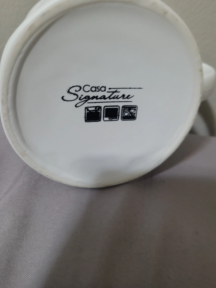 A lovely white mug from Casa Signature! It has a unique geometric design and is in great condition. Perfect for your morning coffee or tea!
