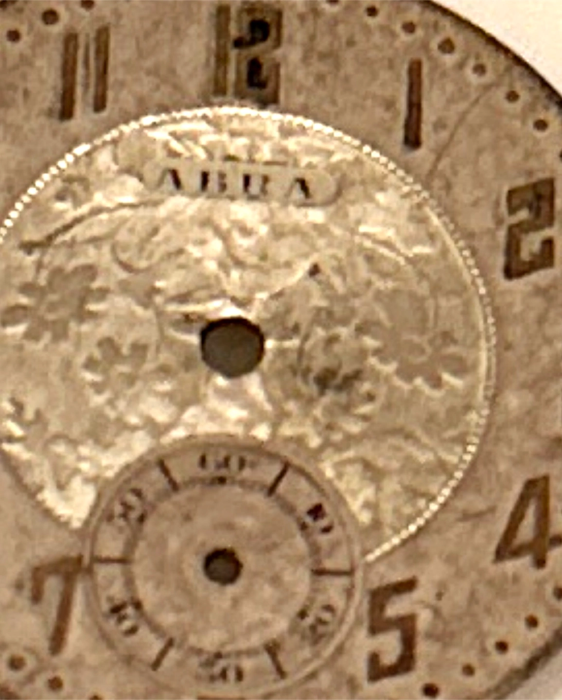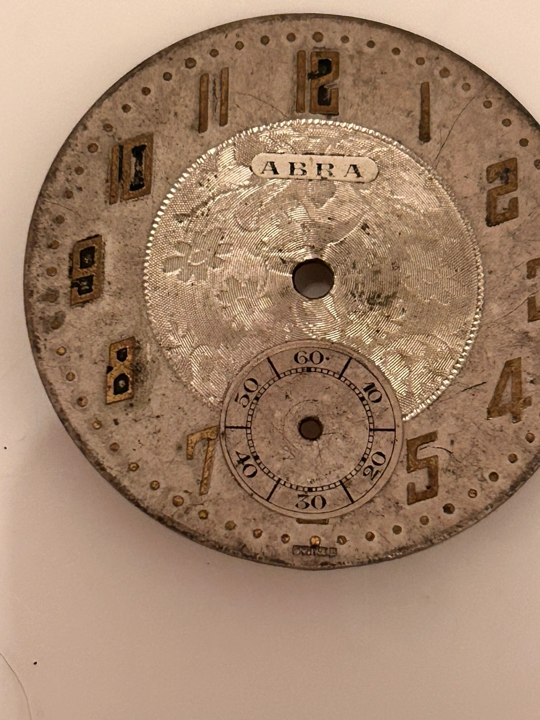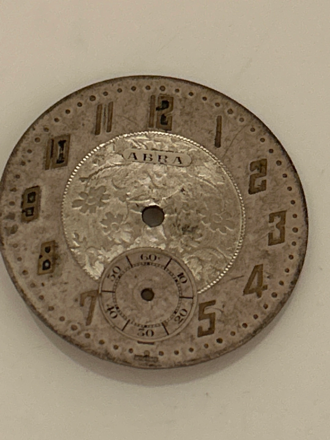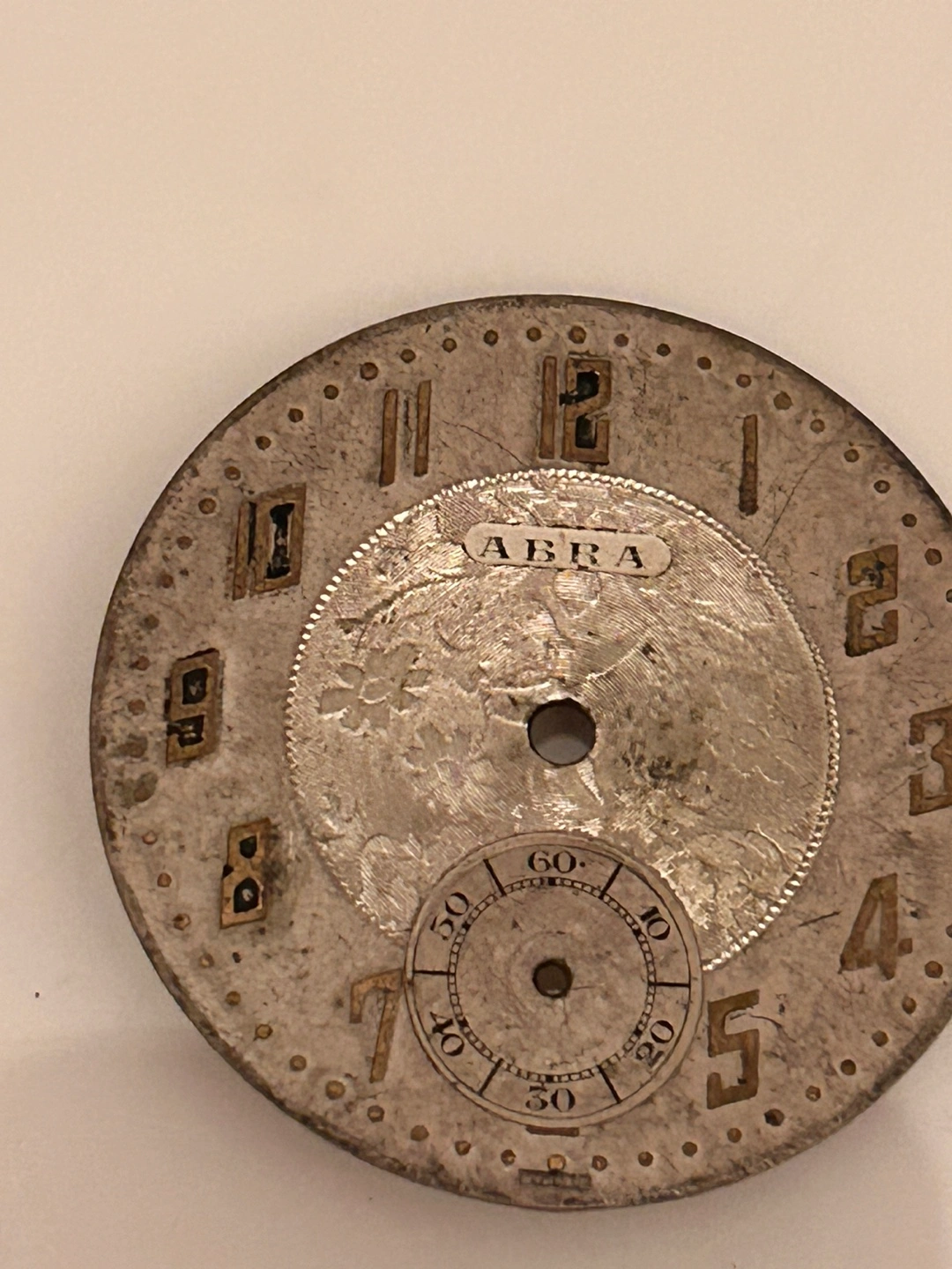 Selling a vintage ABRA watch face. It shows signs of wear and age, as seen in the photos.