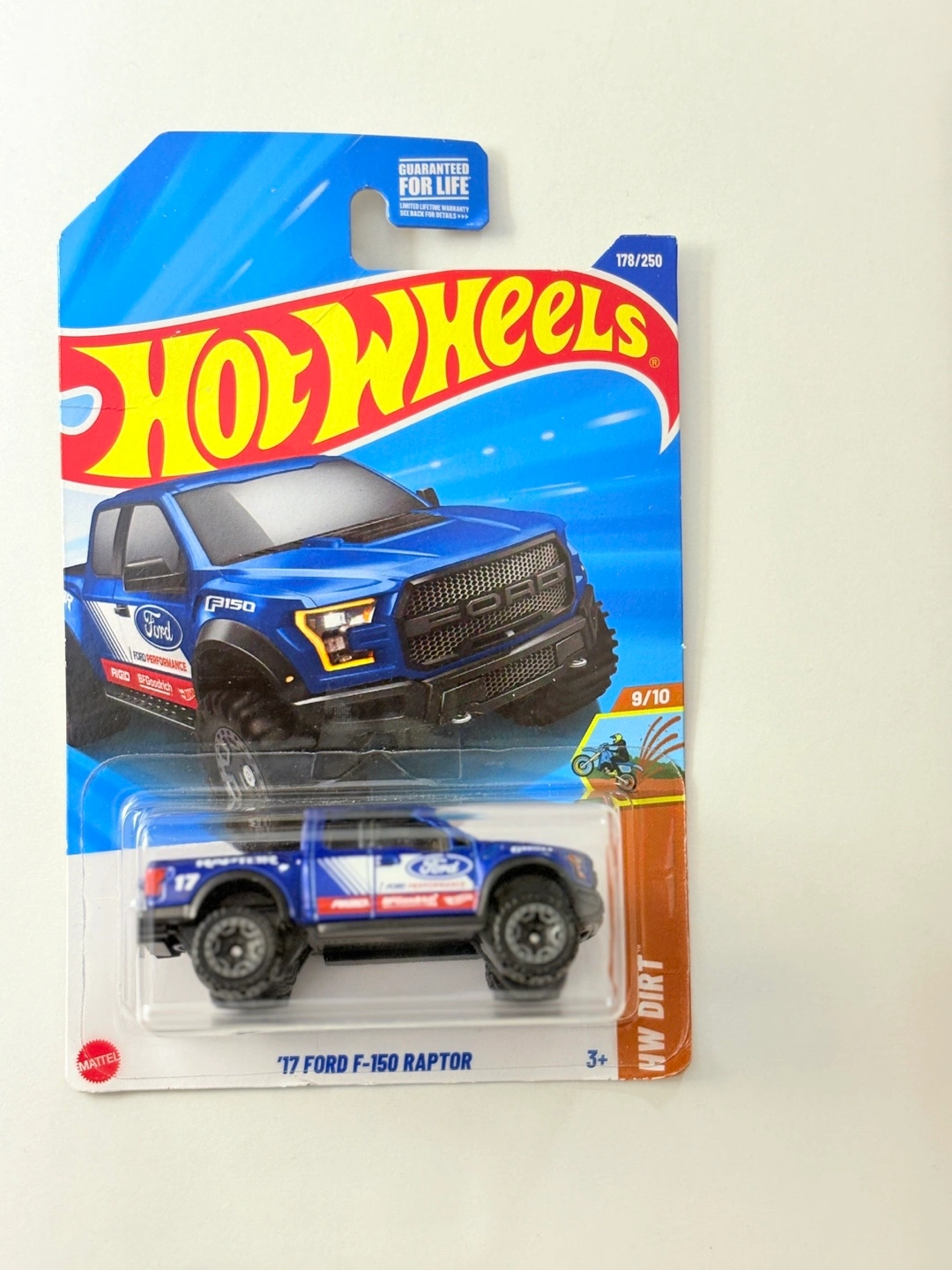 Selling a brand new, still in package Hot Wheels '17 Ford F-150 Raptor. This blue die-cast truck is ready for a new home! It's part of the HW Dirt series and is number 9/10 in the set. A great addition to any collection!