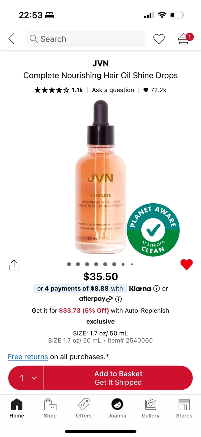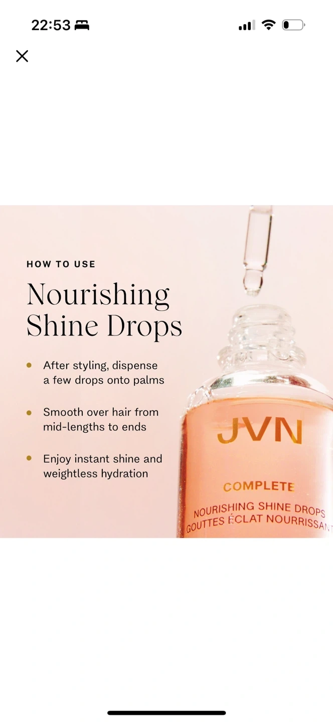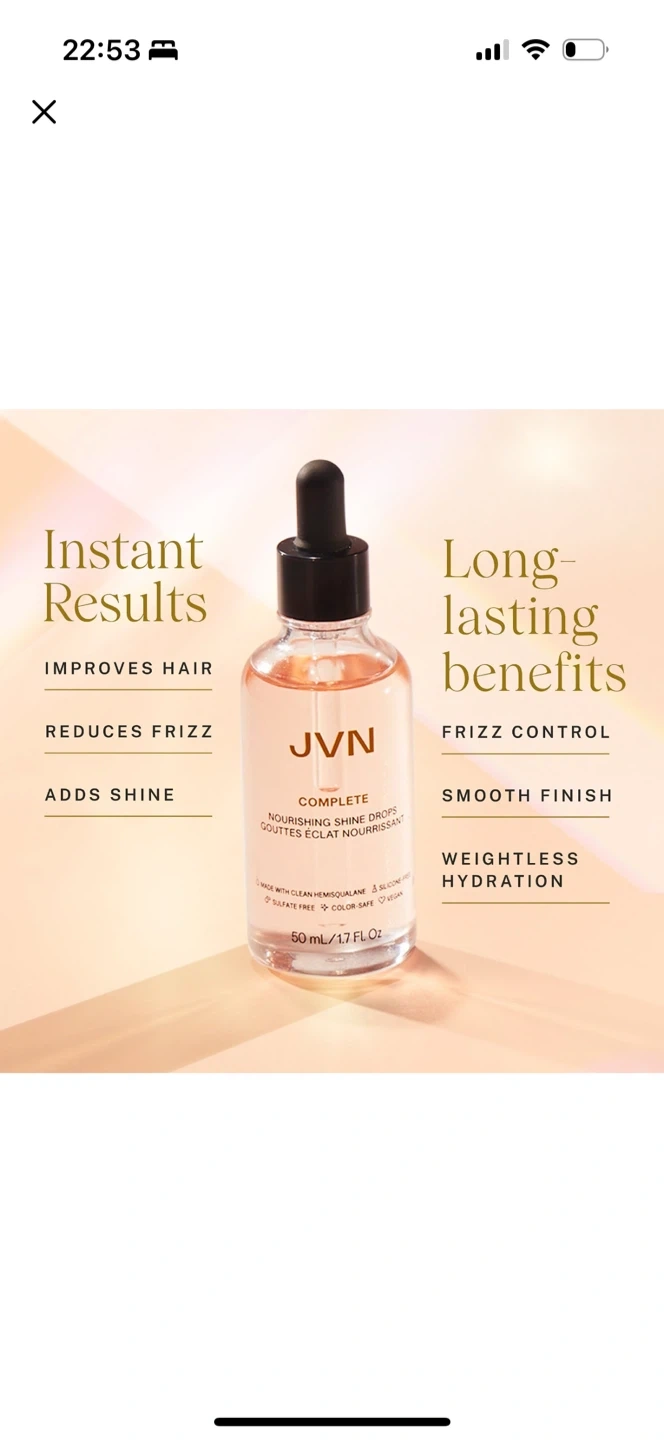 New, unused JVN Complete Nourishing Hair Oil Shine Drops. This hair oil is designed to improve hair, reduce frizz, and add shine. It also provides smooth finish and weightless hydration. Full size 50ml / 1.7 fl oz. $35.50 valued Pickup in Richmond Centre or Lansdowne. Cash only.