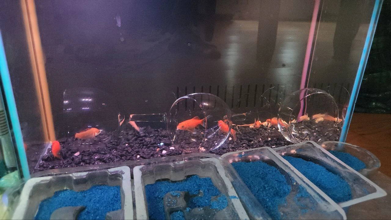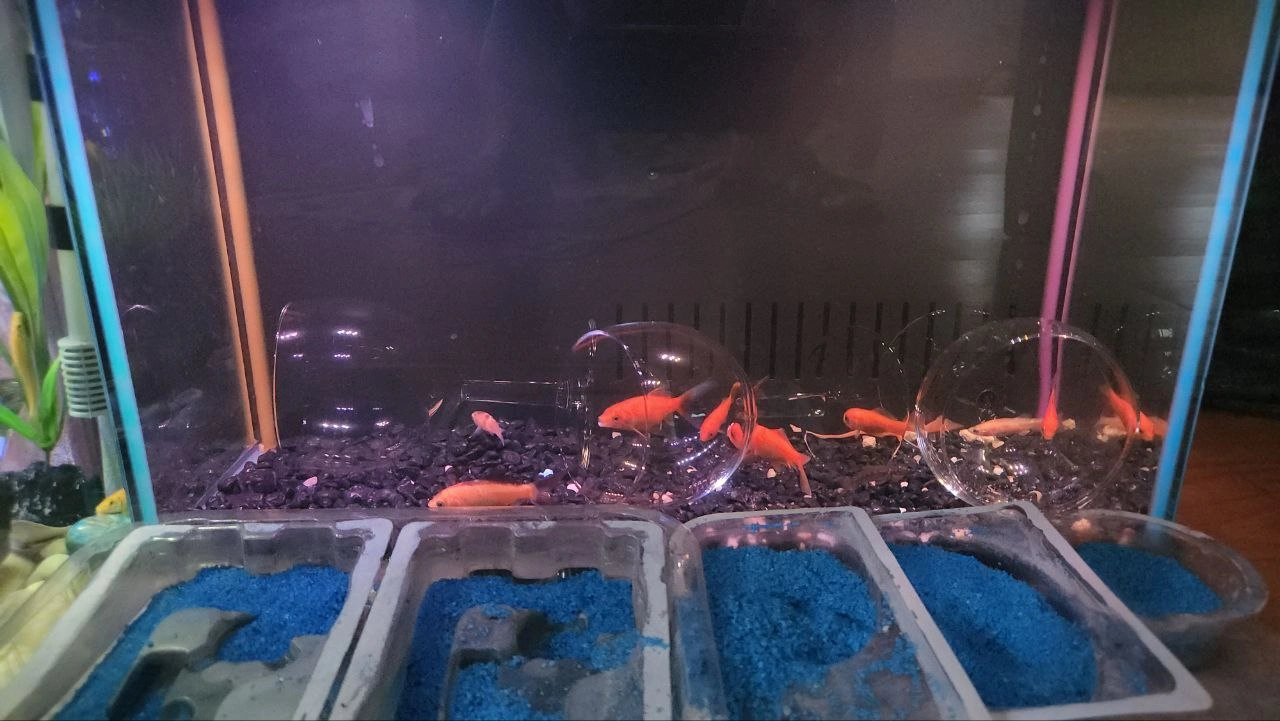 Dimensions: 16x9x11 glass aquarium may include filter, pumps, heater, lighting, decorations, rocks, etc. (everything you will need for a successful home/office aquarium) Currently the aquarium has a happy colony set of Gold fishes and Algae eaters in different colours and sizes and the aquarium setup is more geared towards a high pH environment (pH 7 or higher). (Gravel, rocks are coral) A medium well size aquarium. If you are a hobbyist looking to get an aquarium setup with everything you need for a reasonable price this is a great way to get started. With the powerful lighting and coral rock and gravel, this aquarium is easily converted to a marine aquarium Great condition and awesome Design Delivery, installation, maintenance and free consulting available
