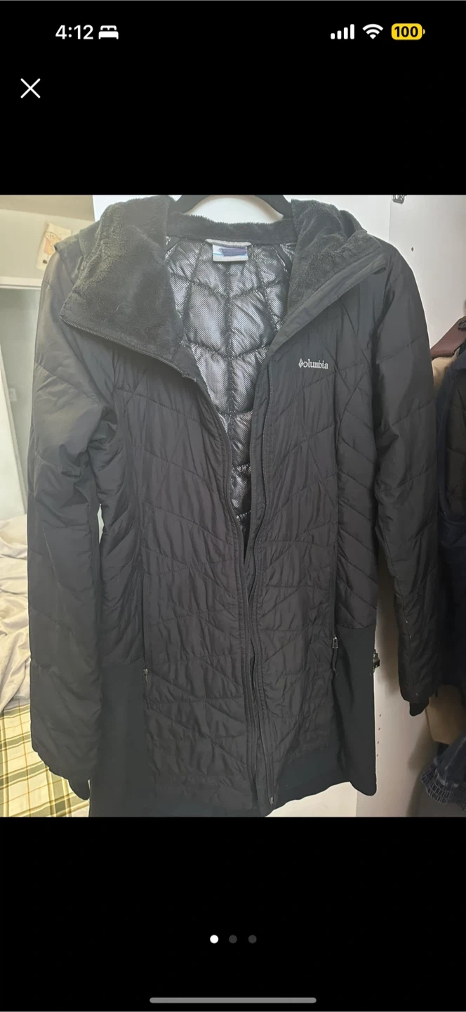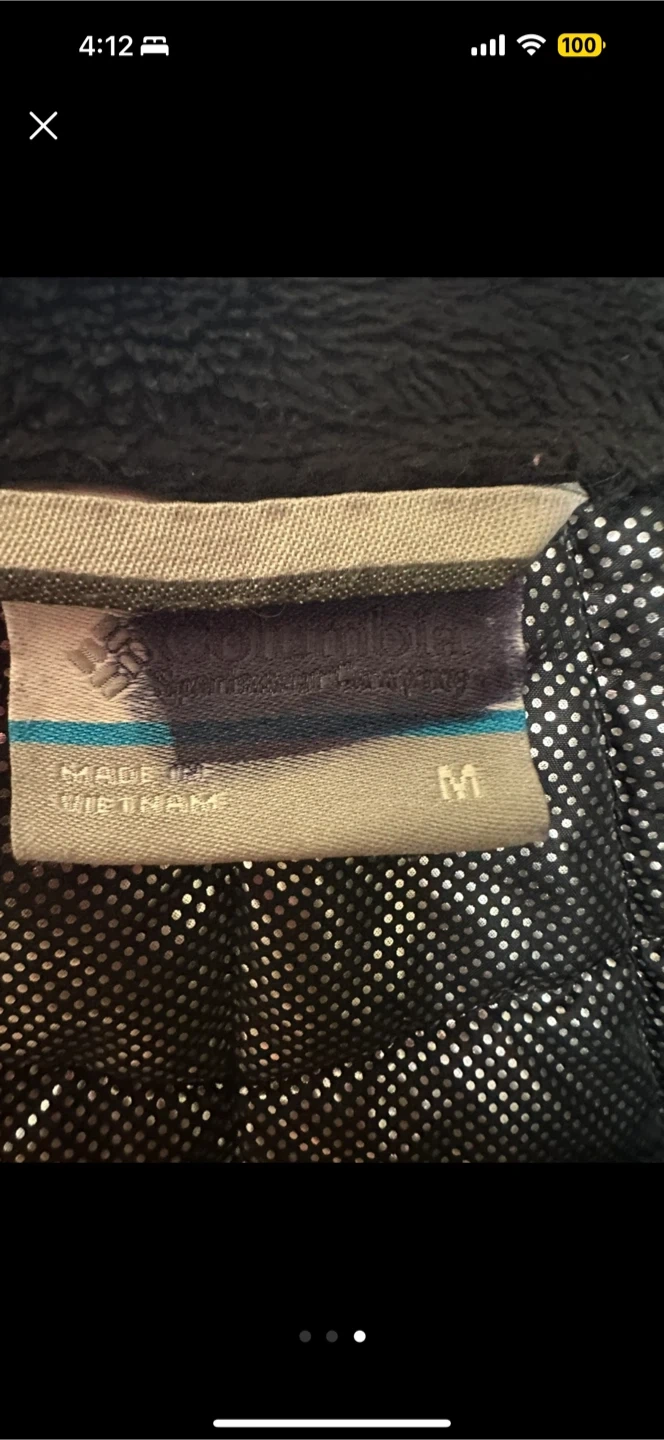 Selling a Columbia jacket in black, size medium. It's in great condition and ready for a new home! Perfect for staying warm during those chilly Canadian days. It does not have a zipper