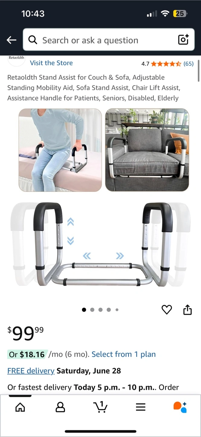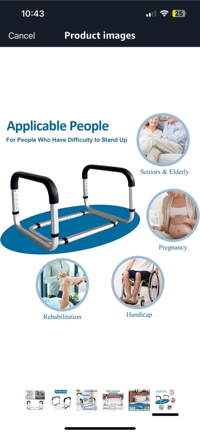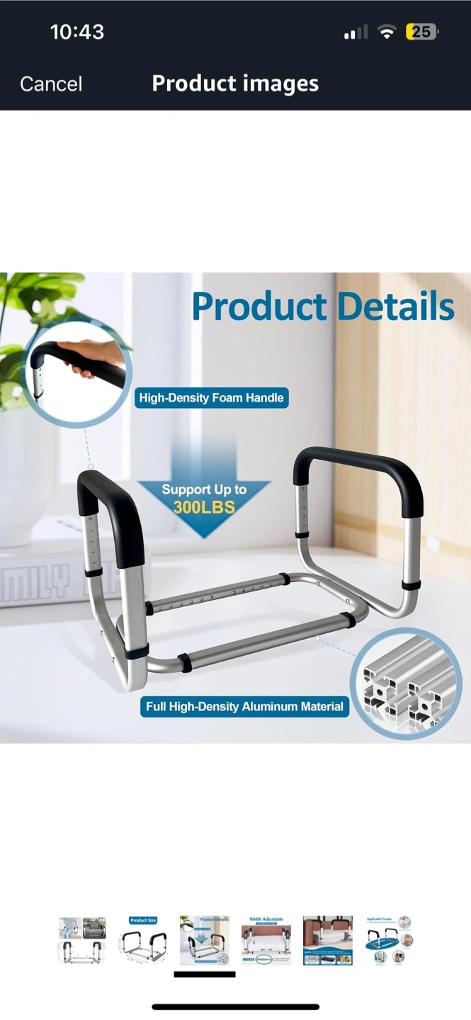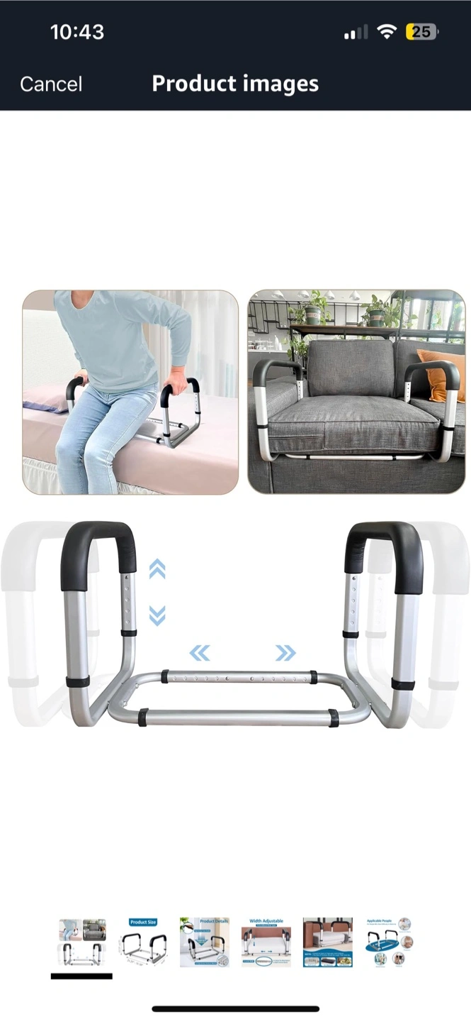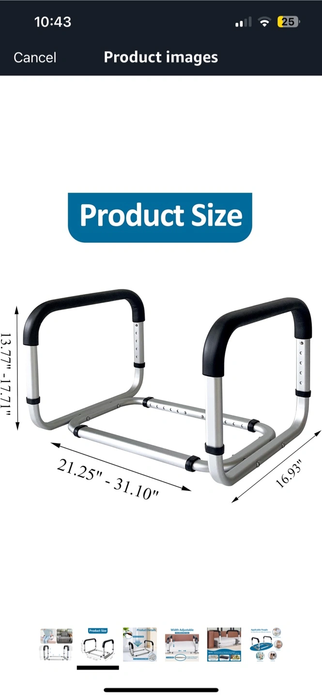 Selling a RETAOLDTH bed assist rail. It's designed to help you stand up safely from your bed. - High-density foam handle - Supports up to 300 lbs - Made from full high-density aluminum material It can be adjusted to fit different bed sizes, ranging from 21.25" to 31.10" in width, 13.77" to 17.71" in height, and 16.93" in depth. The box is included!