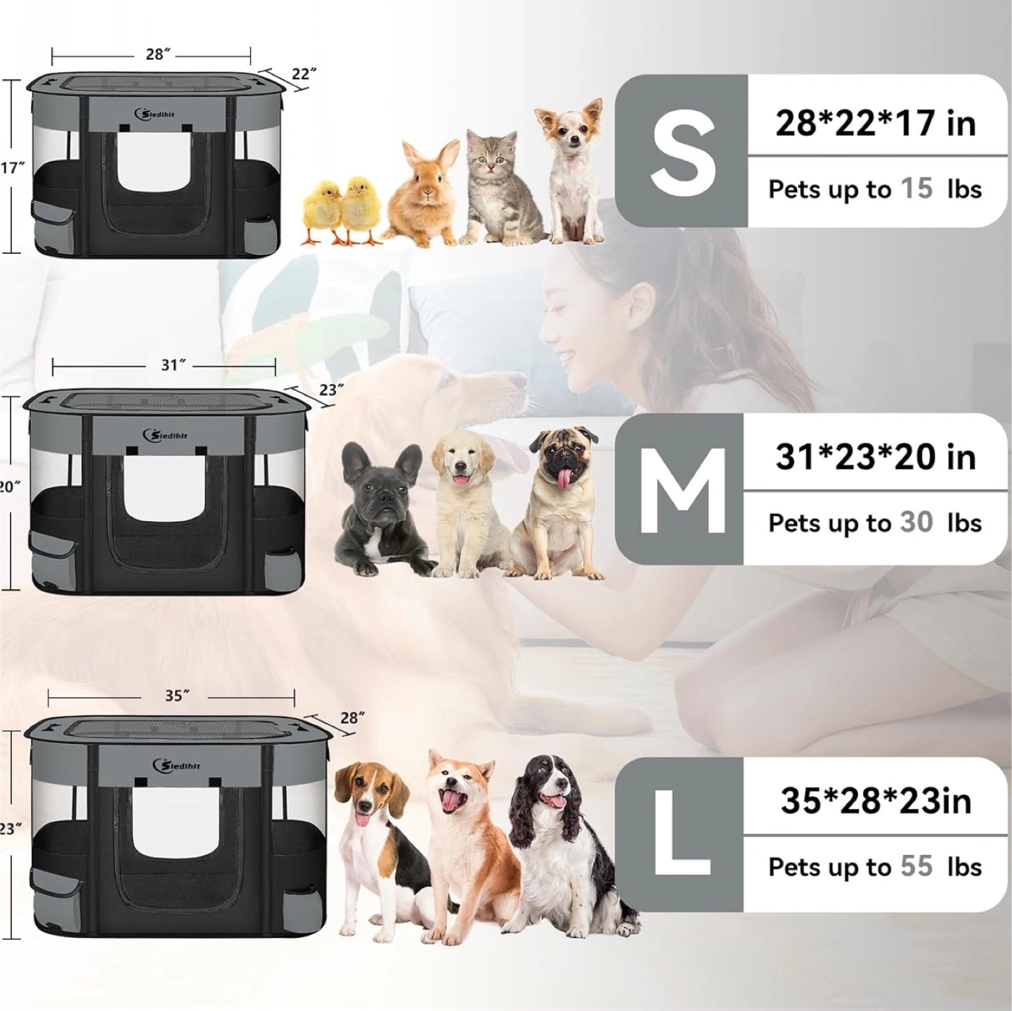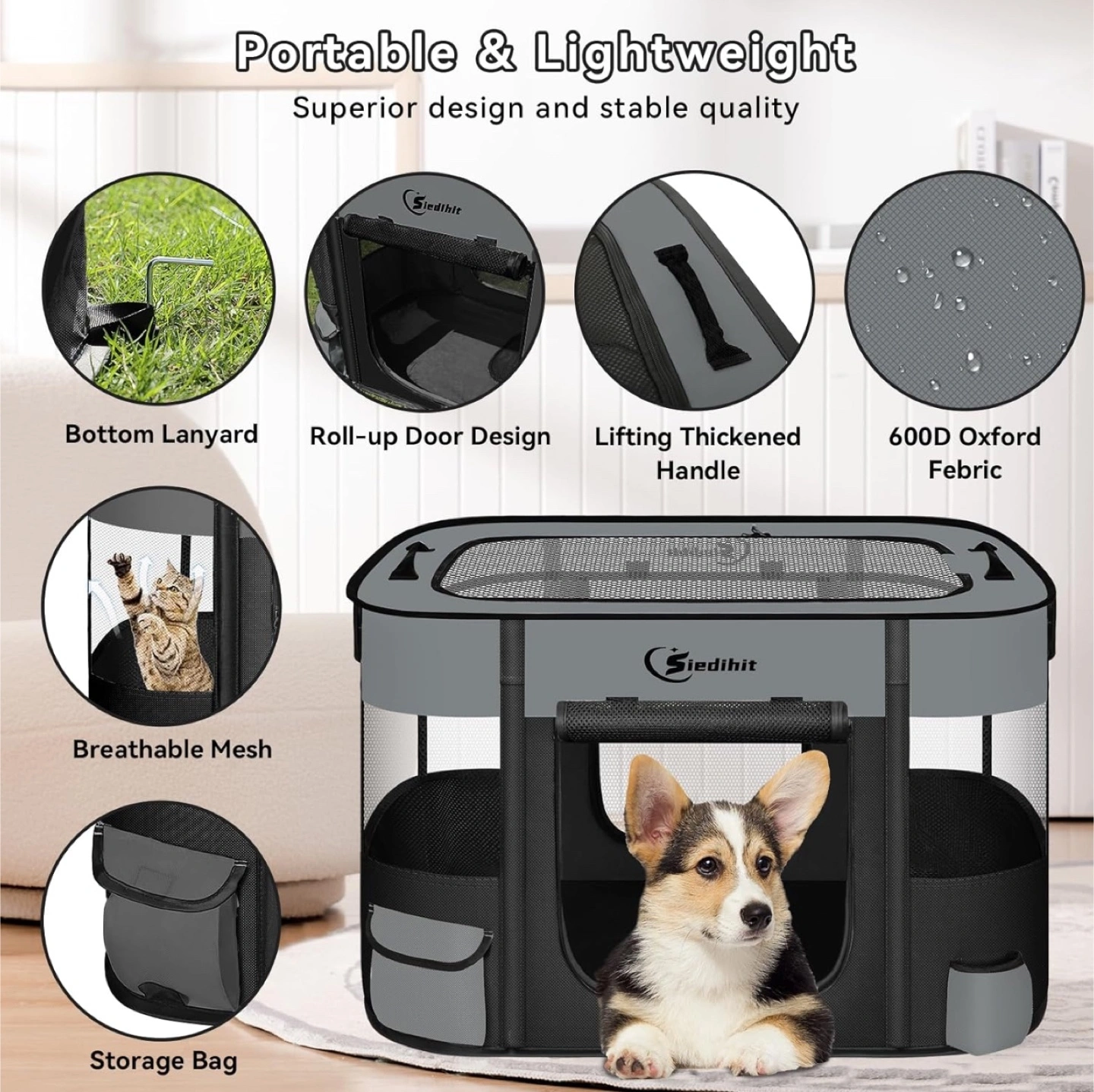 Siedihit Pet Playpen, Pet Puppy Portable Pens for Outdoor Travel, Indoor After Surgery Use, Foldable Dog Kennel Tent for Rabbit or Small Animals and Tent Stakes (Dark Grey, Small) Brand new in box See pics for measurements