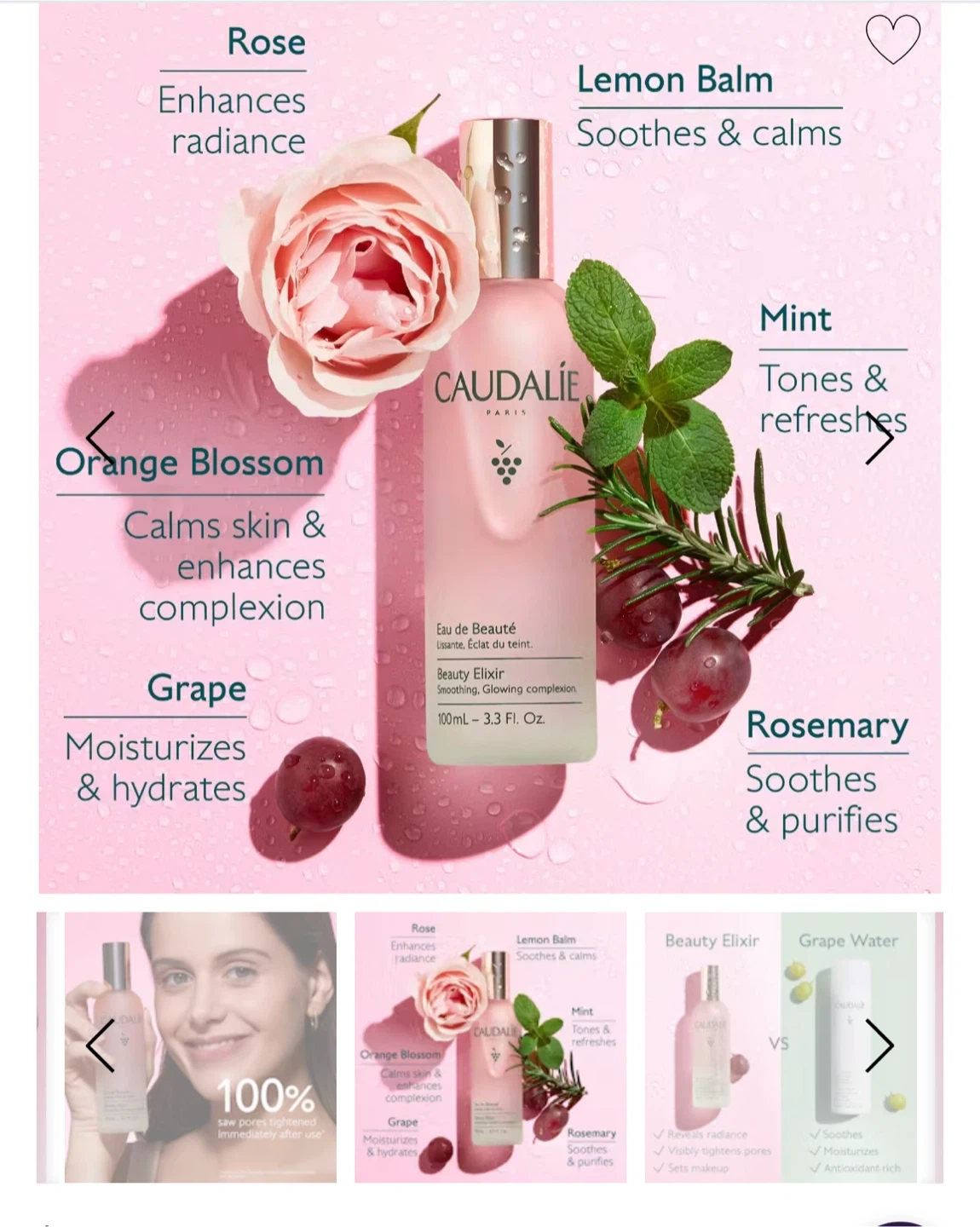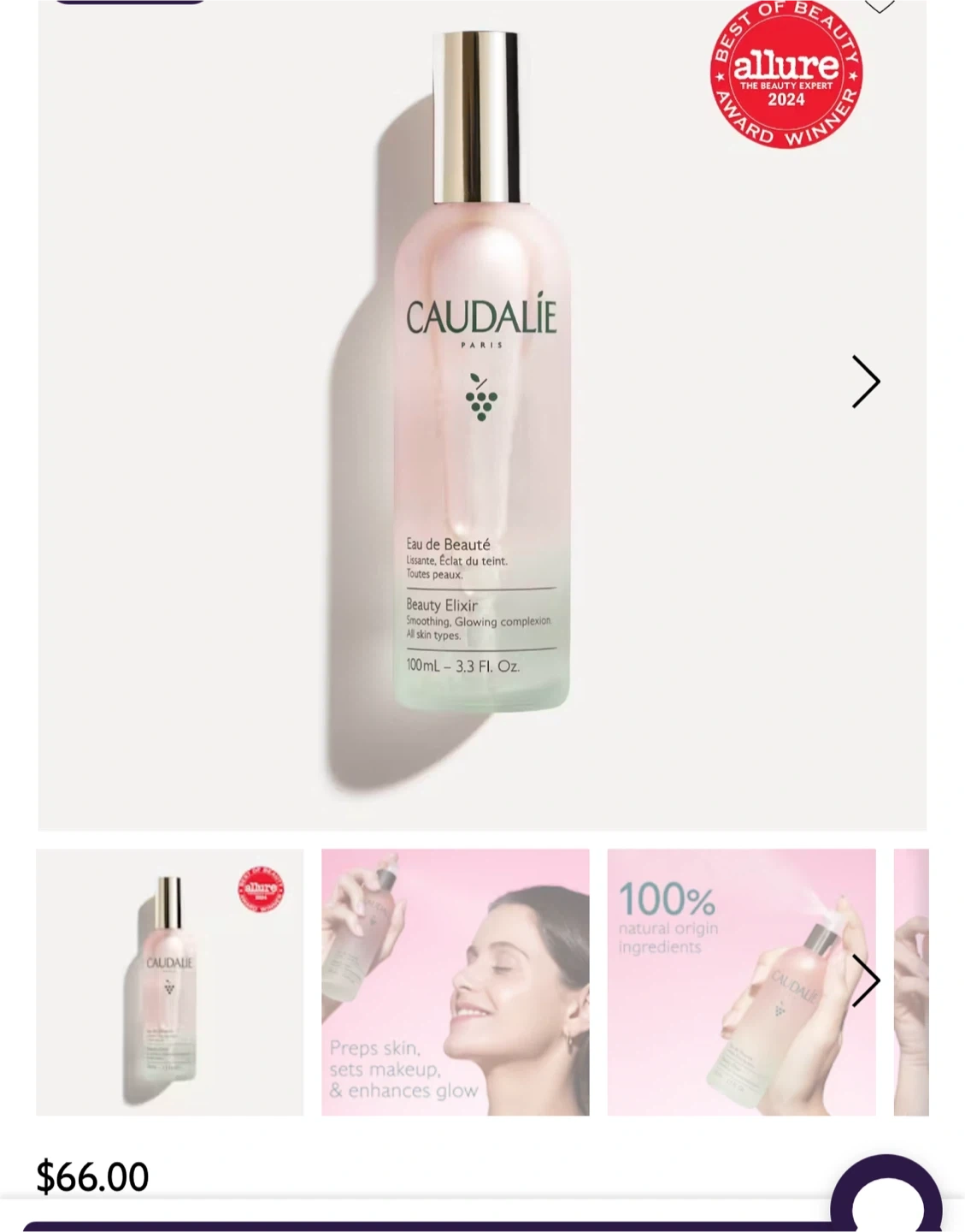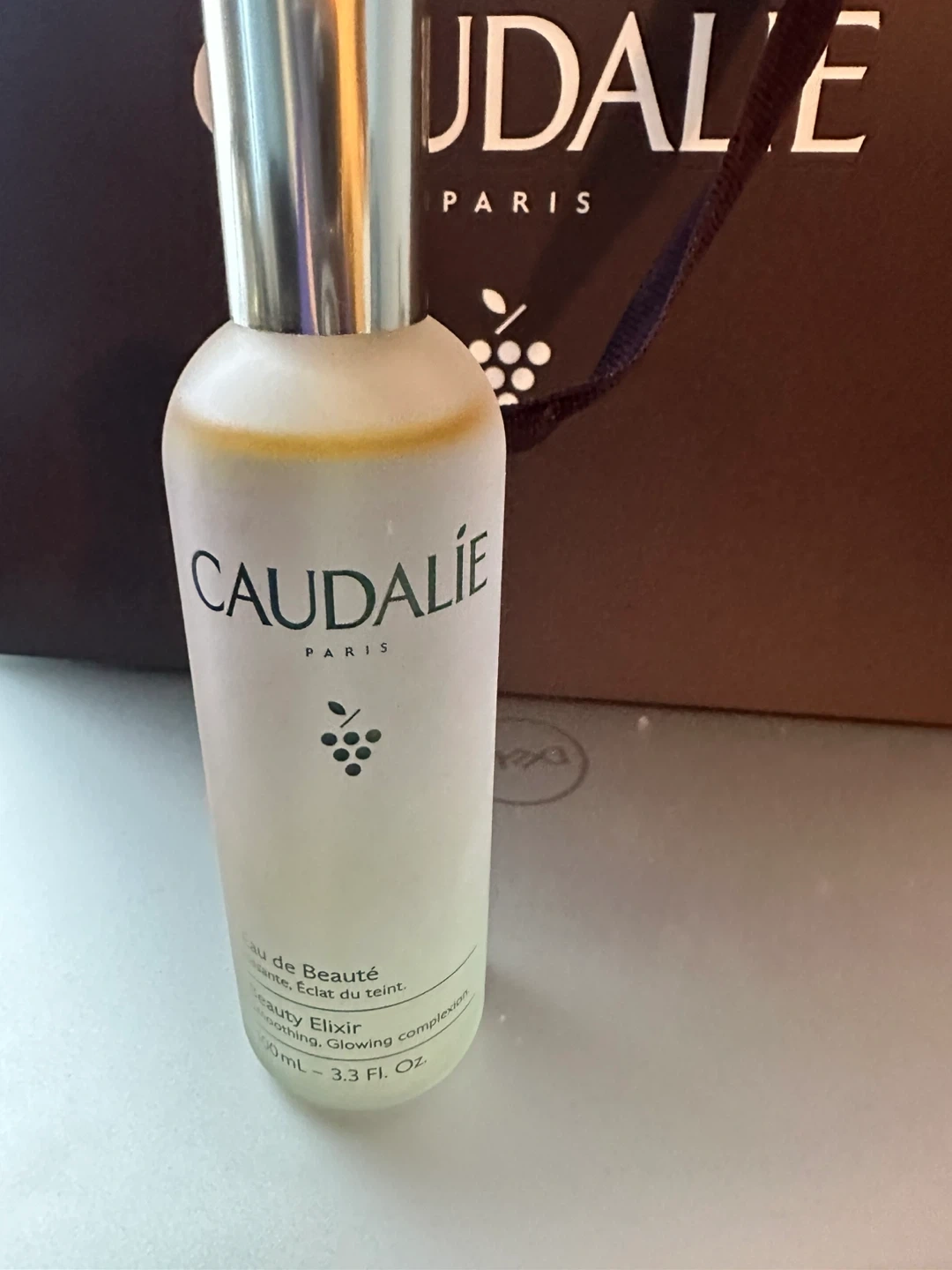 Selling a bottle of Caudalie Beauty Elixir. It's a smoothing and glowing complexion treatment suitable for all skin types. The bottle contains 100mL or 3.3 Fl Oz. It preps skin, sets makeup, and enhances glow, with 100% natural origin ingredients! It retails for $66 + Tax