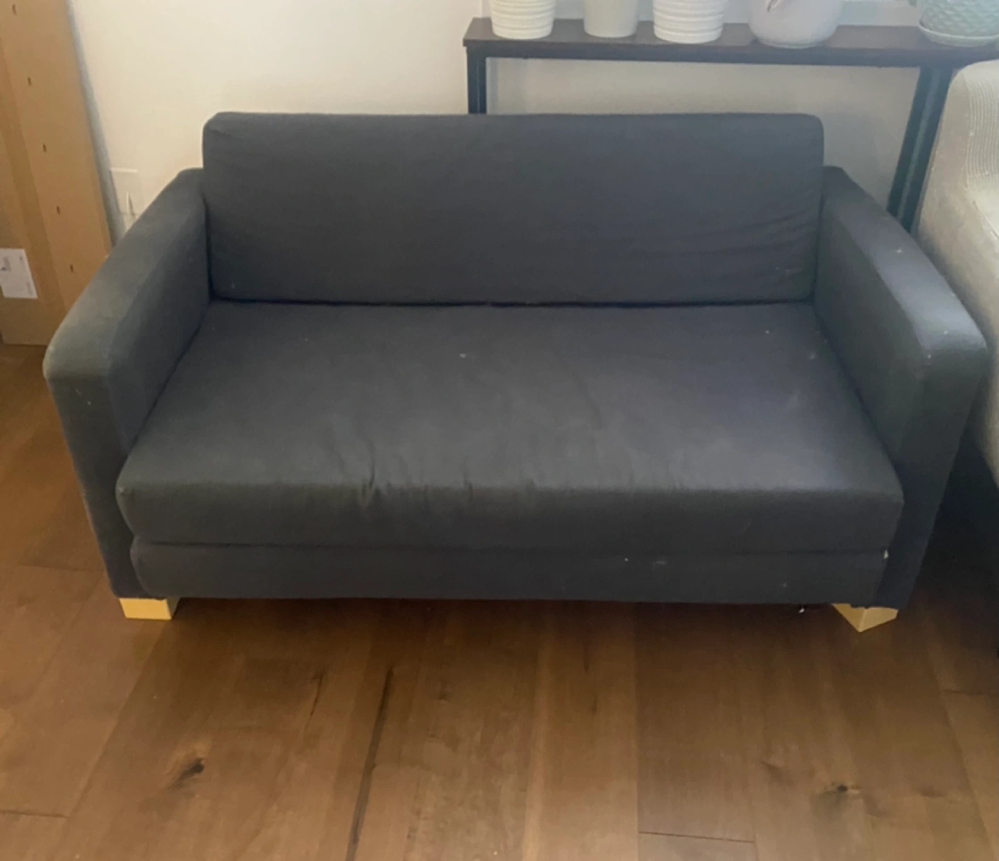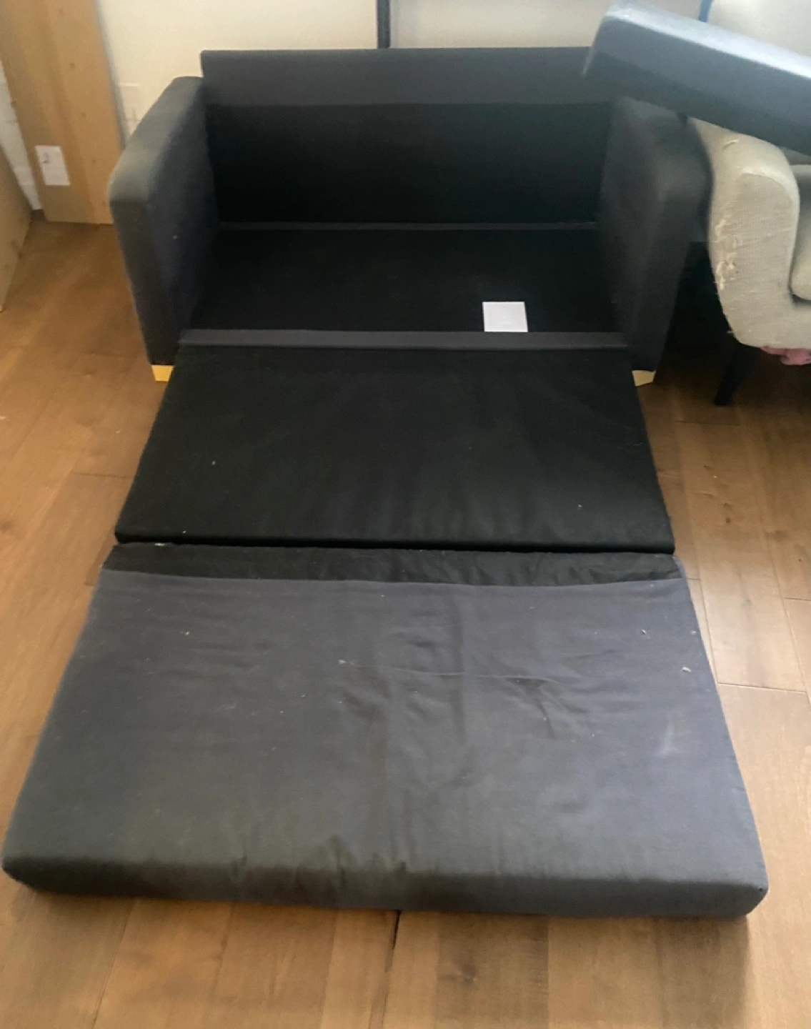 Selling a gently used IKEA sofa bed. It's a comfy and convenient piece of furniture, perfect for small spaces, kids rooms, or guest rooms. It easily converts from a sofa to a floor bed, making it super versatile. The sofa bed is in good condition!