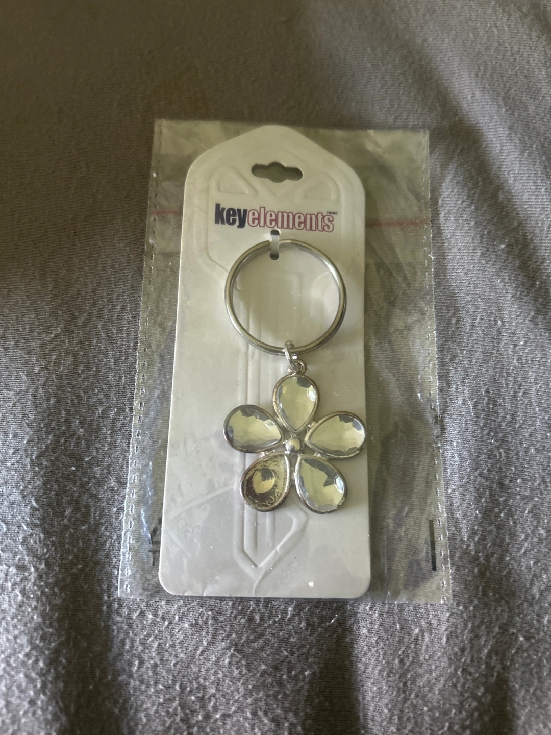 Selling a brand new Key Elements flower keychain still in its original packaging! It's a cute little accessory to add some sparkle to your keys or bag. Would make a lovely gift too! Please note one of the gems on key chain is small , Not sure why but that’s how it came , it is new .