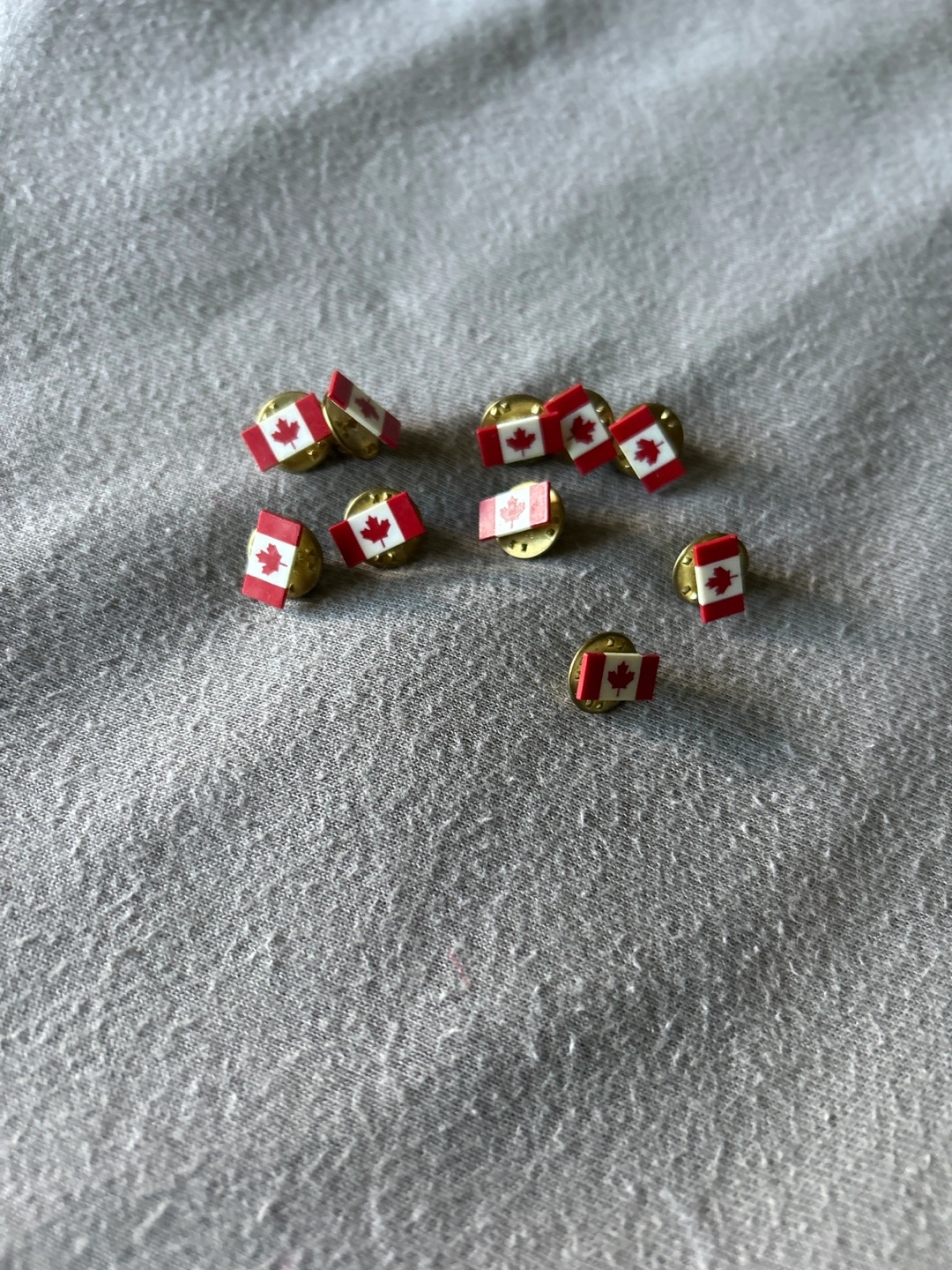 a set of Canadian flag pins! Perfect for adding a touch of Canadian pride to your jacket, backpack, or anywhere else you'd like to show it off