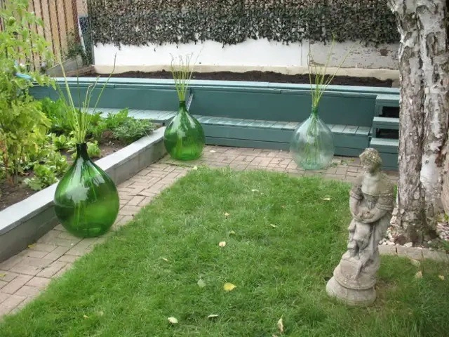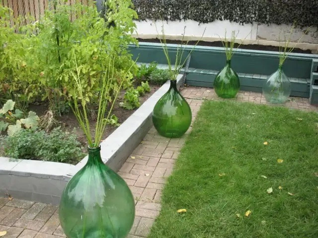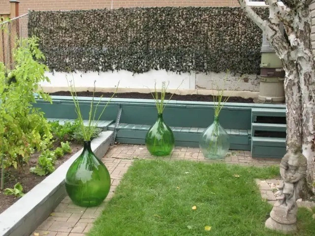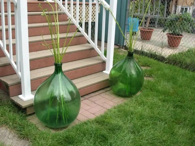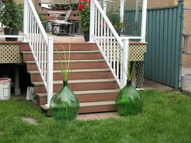 Unique Bottle Garden Decor in excellent condition. Very special way of decoration your garden. Bottles are 26 inches high and 18 inches in diameter. Tops can be filled with various decorative materials. $30 each. 647 709-6005
