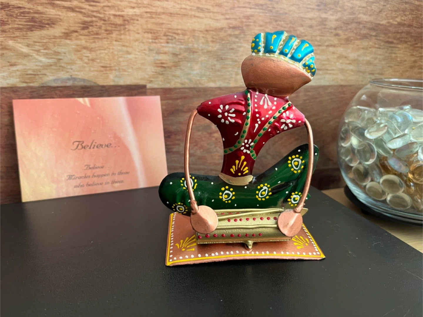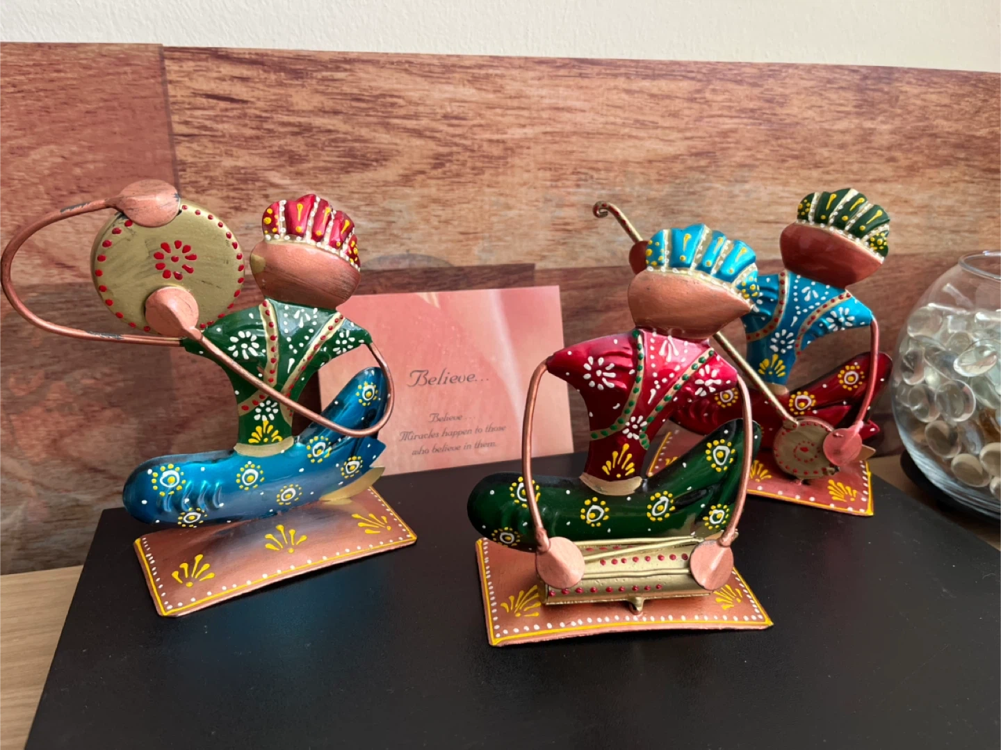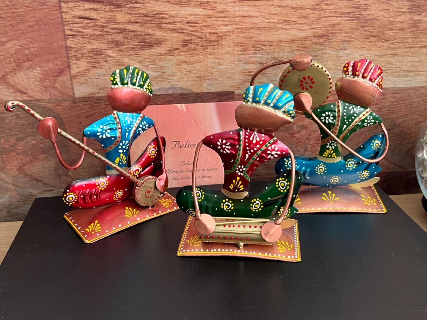 These metal figurines are handcrafted with care. They are brand new and would make a lovely addition to any room!