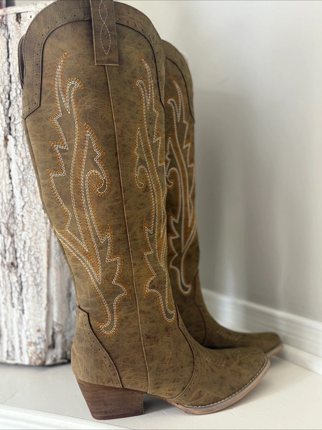These knee high, brown cowboy boots feature exquisite embroidery and convenient pull tabs. They have a non-slip TPR outsole and a vegan leather upper. Perfect for adding a touch of western flair to your wardrobe! New * Paid $80+tax Asking $50