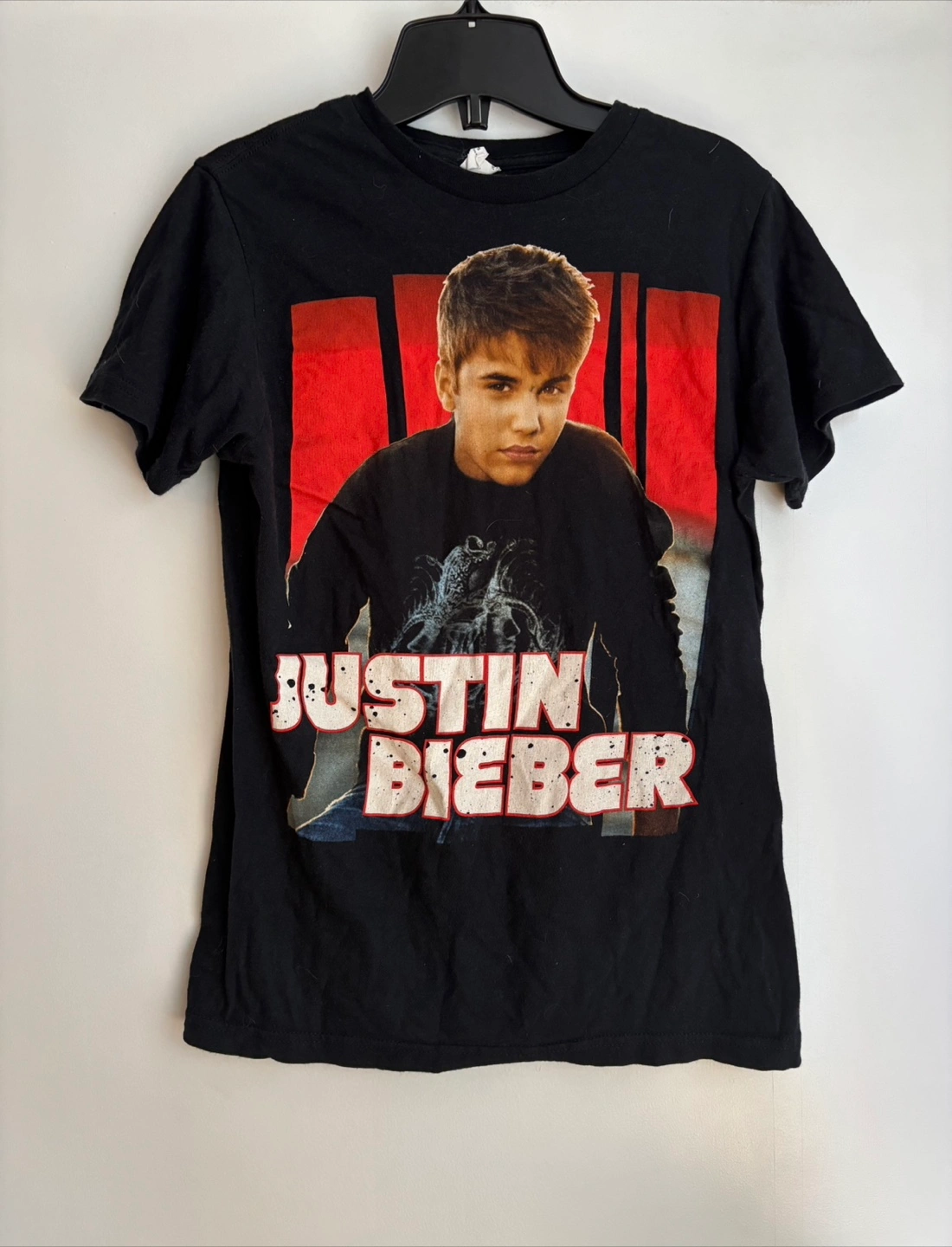 A black Justin Bieber graphic t-shirt. From the OG Baby days. Great for a throwback. Size small. Material is comfy. Can be a free add on for any purchases totally of $10+ or happy to also do a trade! I can go through your listings.