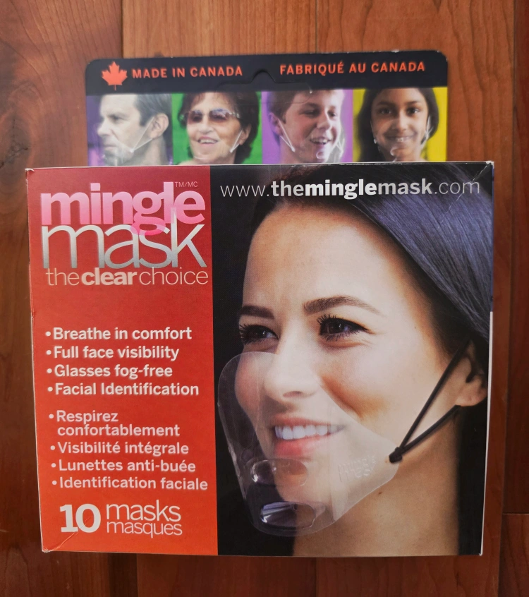 Mingle Face Masks. These masks are brand new and made in Canada. 4 masks for $5 - Breathe in comfort - Full face visibility - Glasses fog-free - Facial Identification