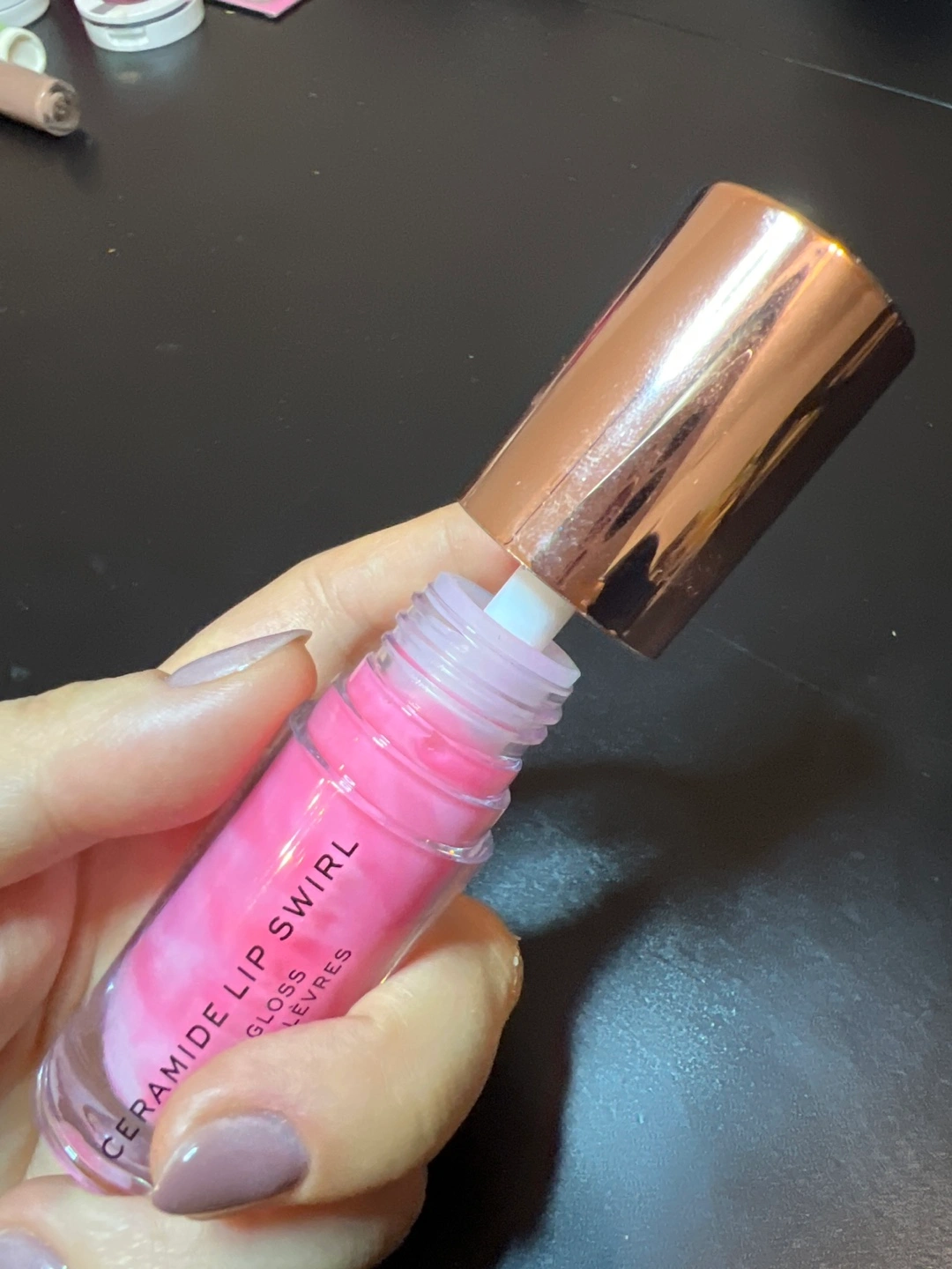 Here's a Revolution Ceramide Lip Swirl gloss! It's a lovely lip gloss with a unique swirl design. Revolution Makeup London is the brand Used a handful of times