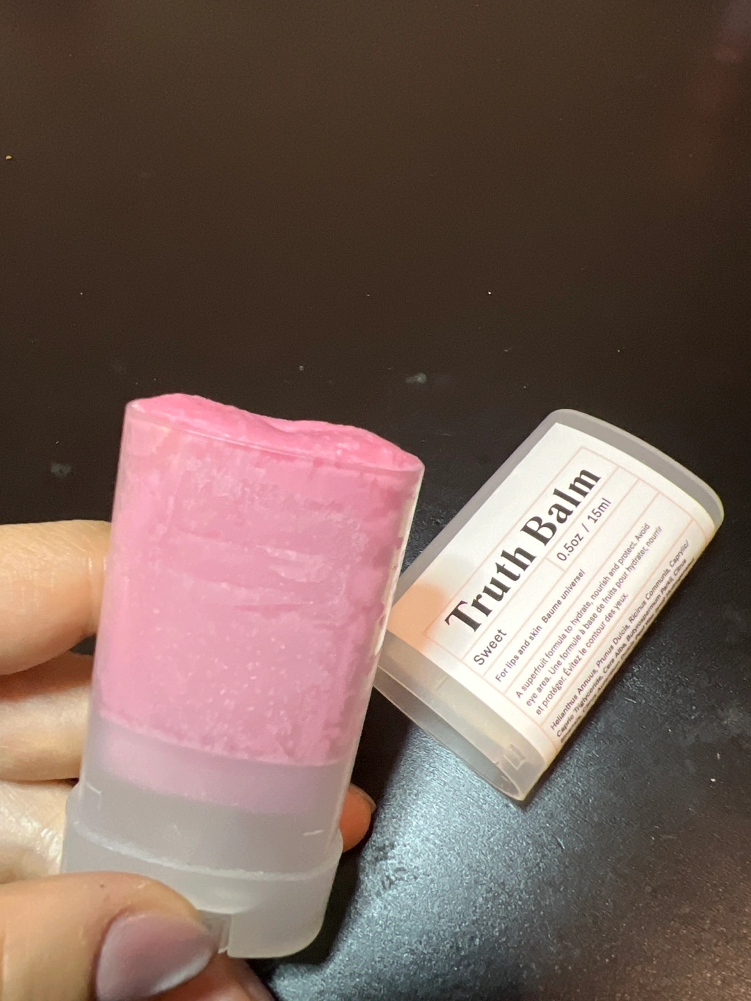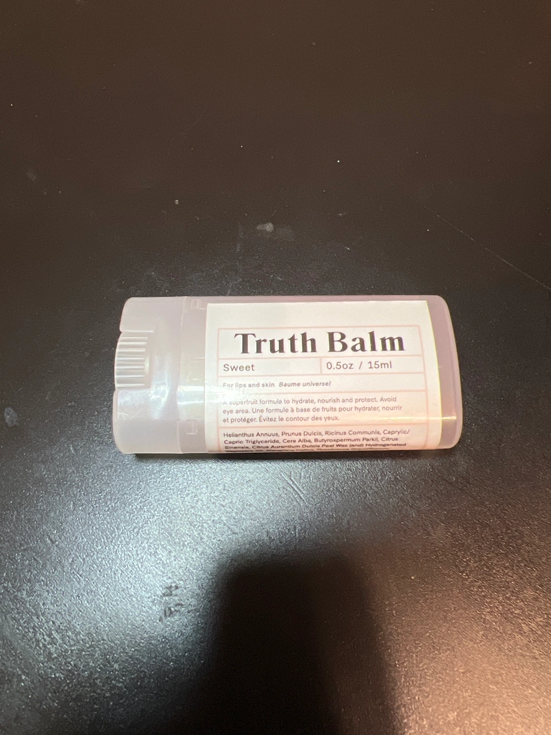 Selling a Truth Balm in Sweet. It's a universal balm for lips and skin. It comes in a 0.5oz/15ml size. It's a superfruit formula to hydrate, nourish, and protect Used a handful of times