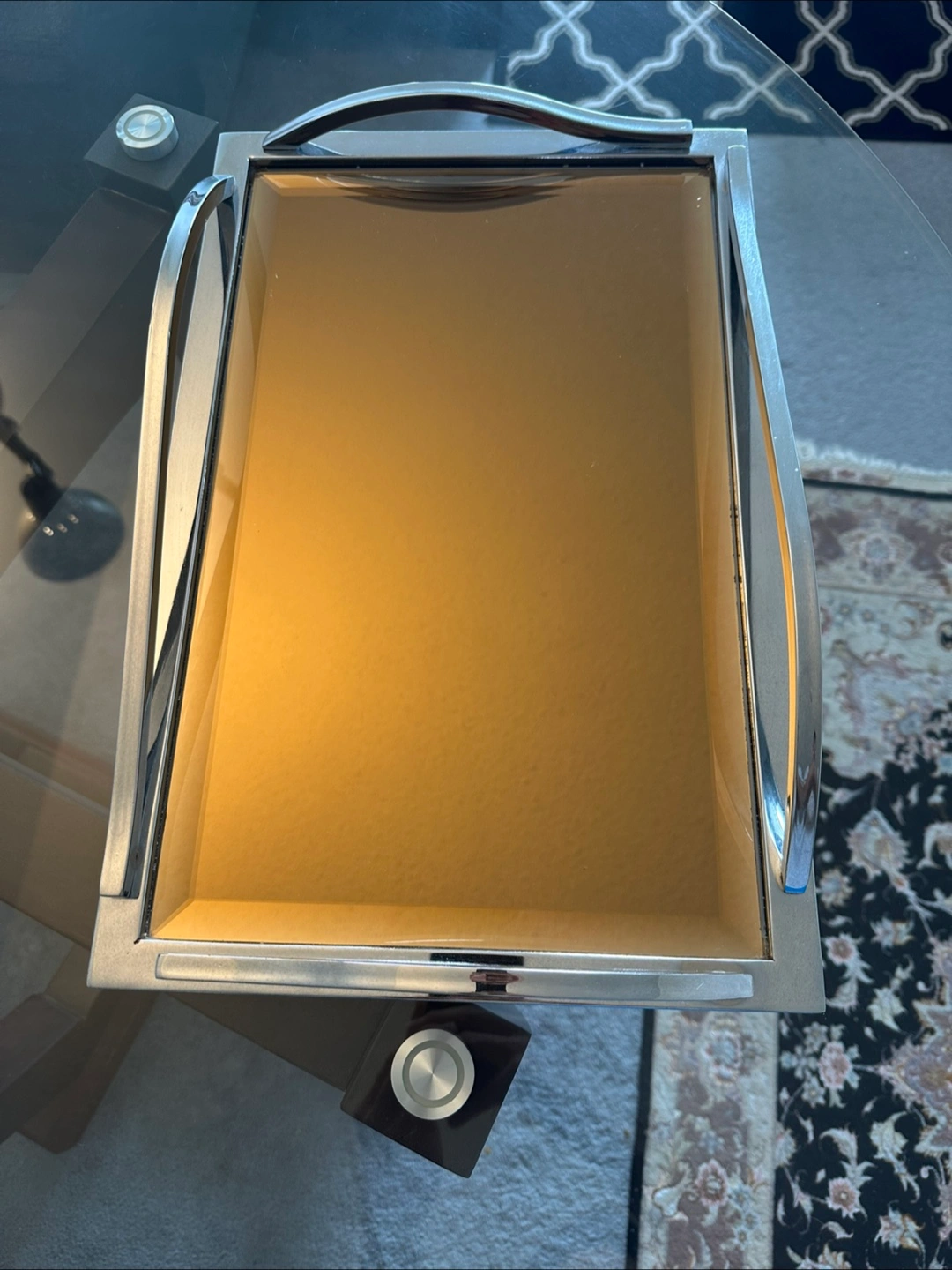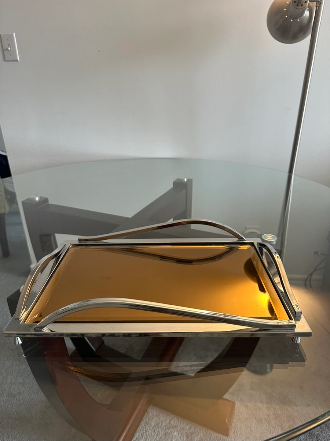 Selling a silver serving tray. It's in great condition and perfect for serving drinks or snacks. It would be a great addition to any home!