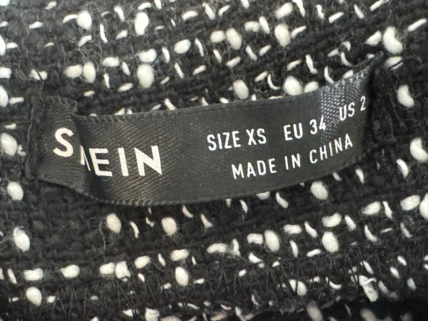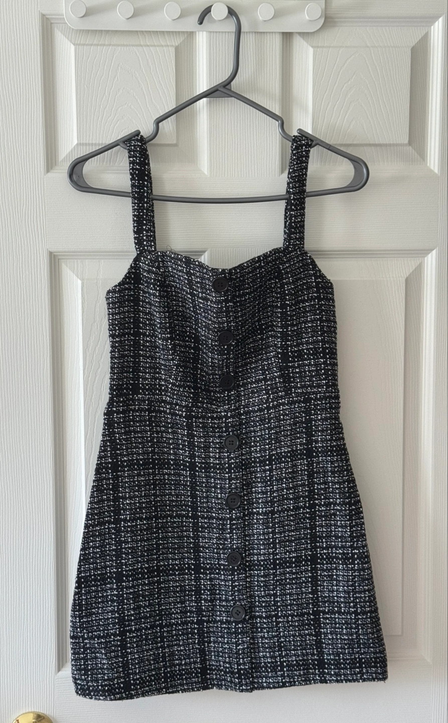Selling a cute Shein dress! It's a black and white tweed style with buttons down the front. Size XS.