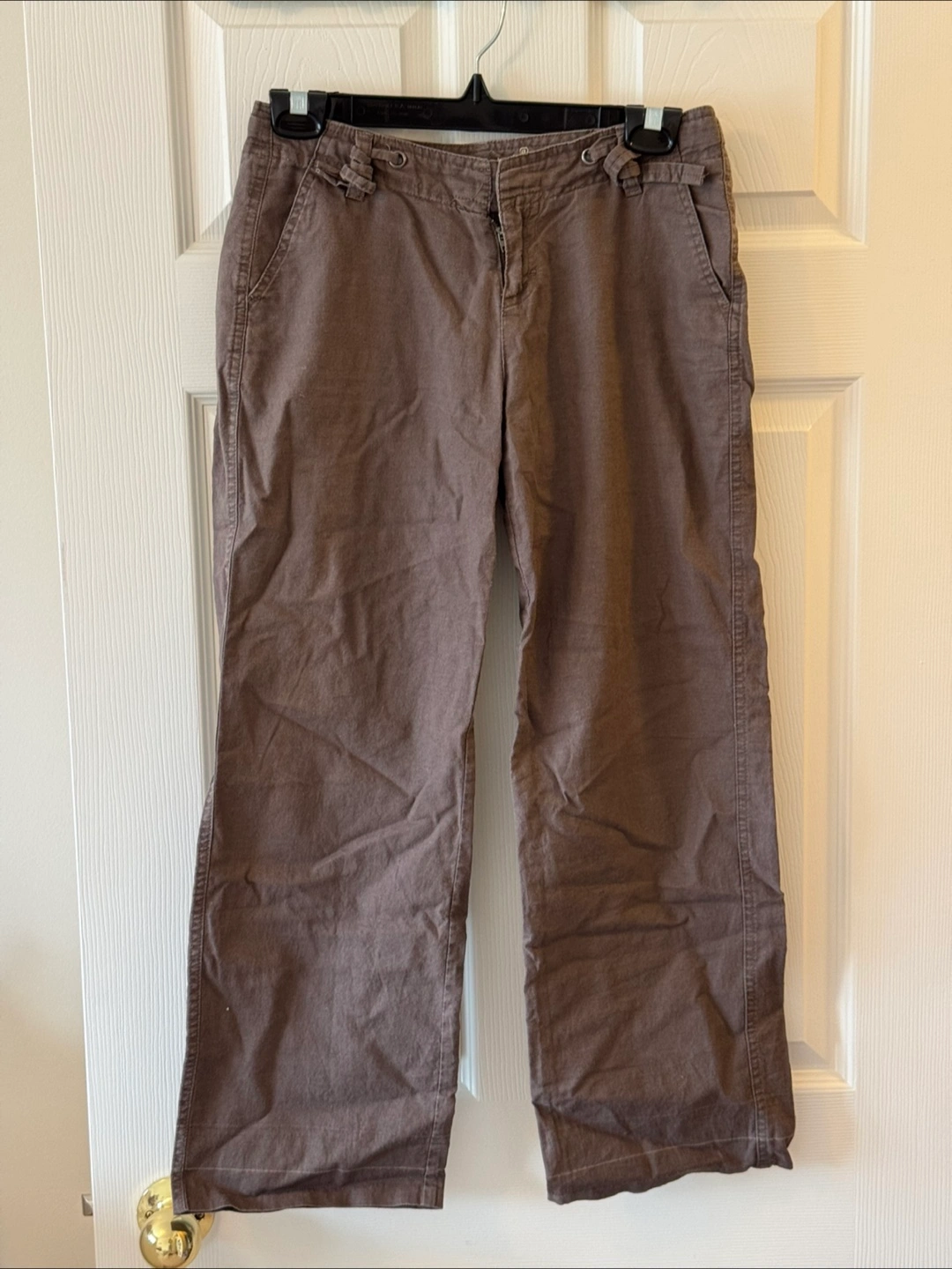 These are a pair of comfy brown wide leg pants. They're perfect for a casual day out or just relaxing at home. They are in great condition!