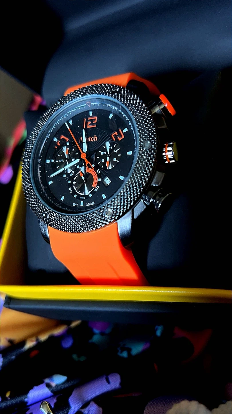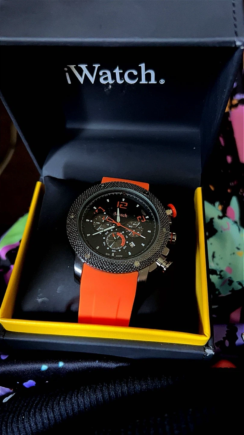 Selling an iWatch IW-A-23 with a vibrant orange band! It's in excellent condition and comes with its original box. Originally priced at $249.99, this watch is sure to make a statement!