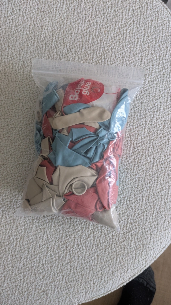 bag of 140 balloons + balloon glue + string brand new blue, red and beige balloons