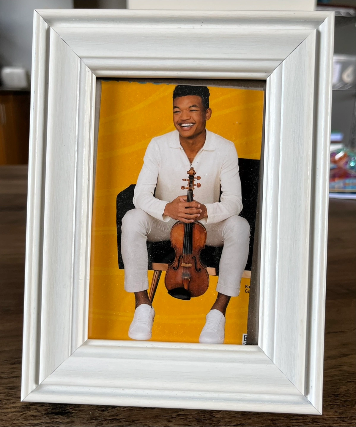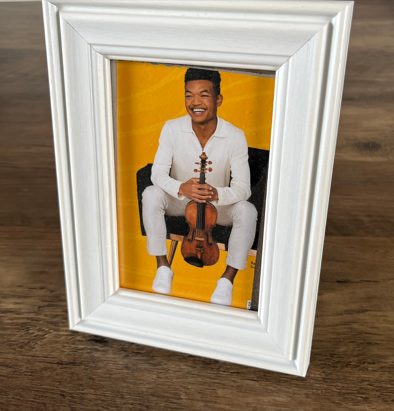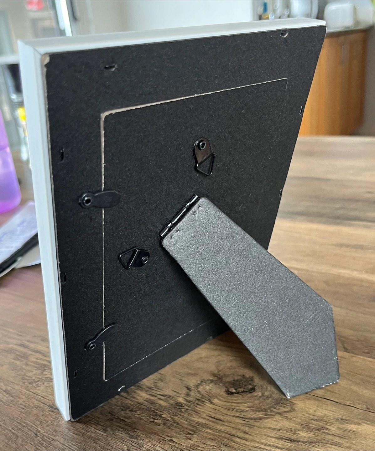 A medium size picture frame. You can hung it or keep it on your desk or shelf. Measuring 8” x 6”.