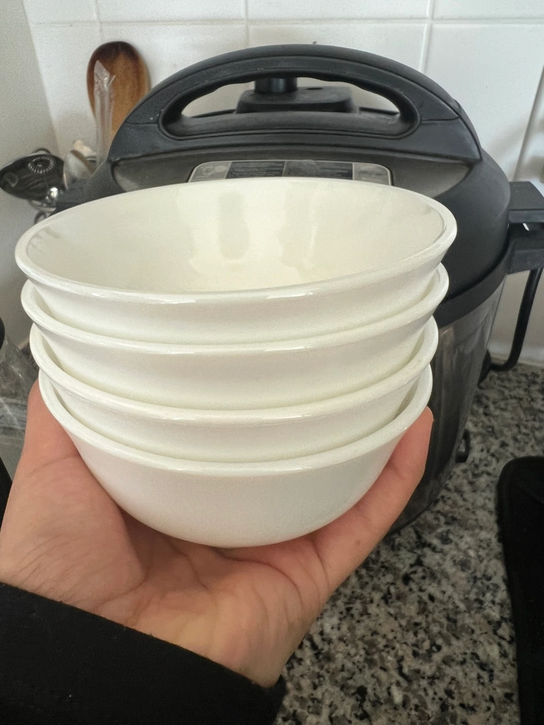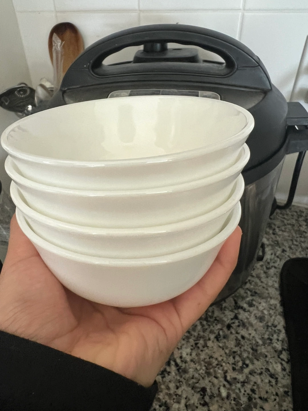 Selling a set of 6 bowls. They are a simple, clean white colour and in great condition! Perfect for everyday use or for serving up snacks. They're lightweight and easy to handle too!