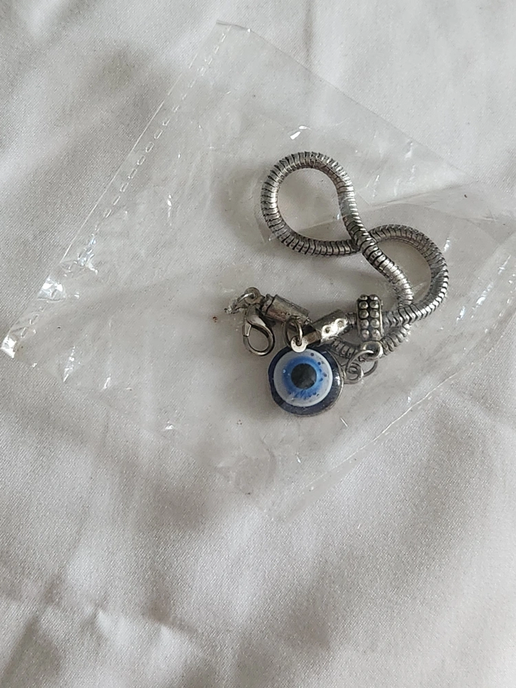 Cute charm bracelet! It features an evil eye pendant and a snake chain, perfect for adding a bit of protection to your style. The bracelet is in great condition and ready to wear. Pick up at 40 Lavery Trail Scarborough