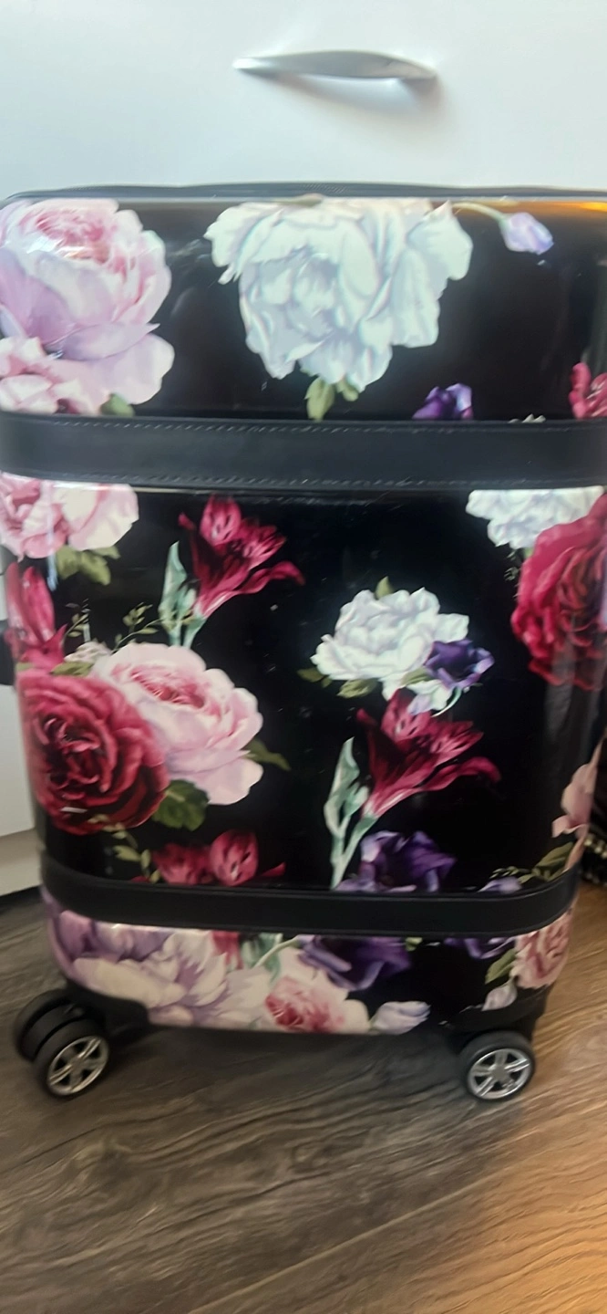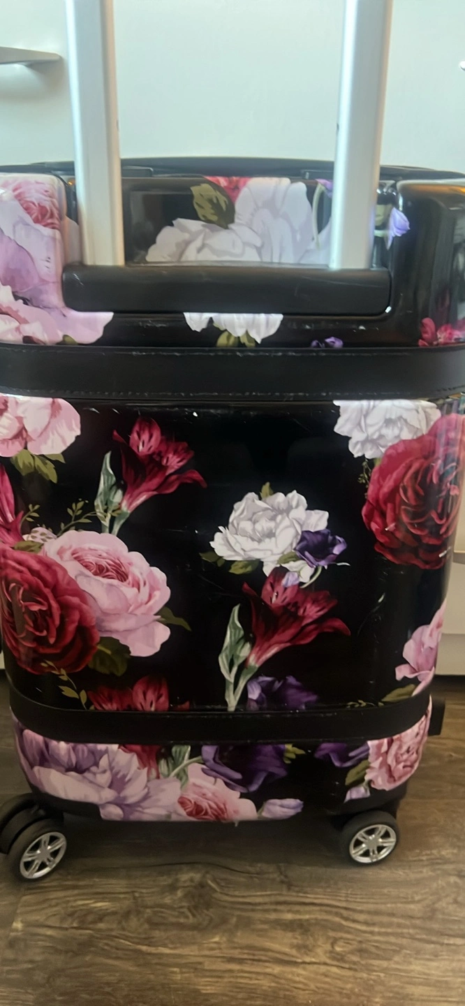 Selling a carry-on suitcase from Triforce. It has a beautiful floral design on a black background. The interior is a deep red colour. Great for weekend trips or as a personal item on flights! Approved size carry-on for MOST Airlines