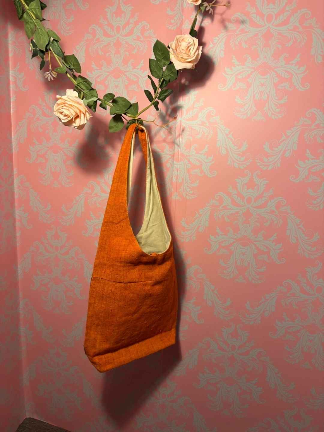 Selling a unique orange shoulder bag! It features a stylish design with denim accents and a button closure. Perfect for carrying your everyday essentials in style