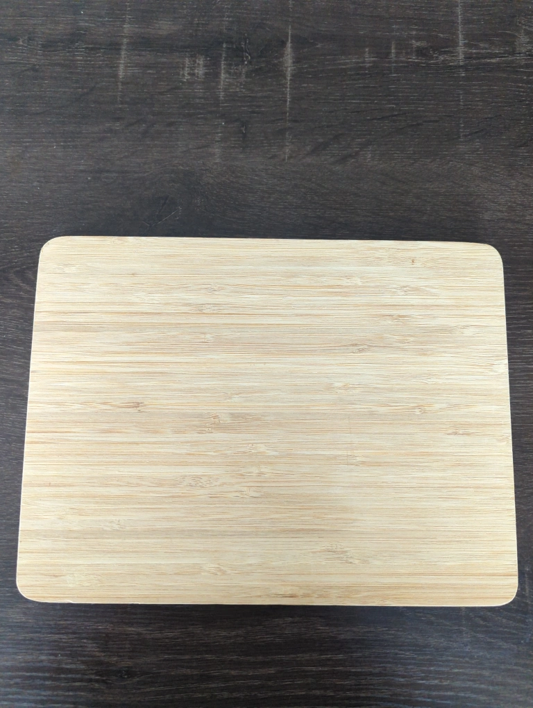 Selling a bamboo cutting board that's in great shape! It measures approximately 13 inches in length and 9 inches in width. Perfect for all your chopping and slicing needs in the kitchen!