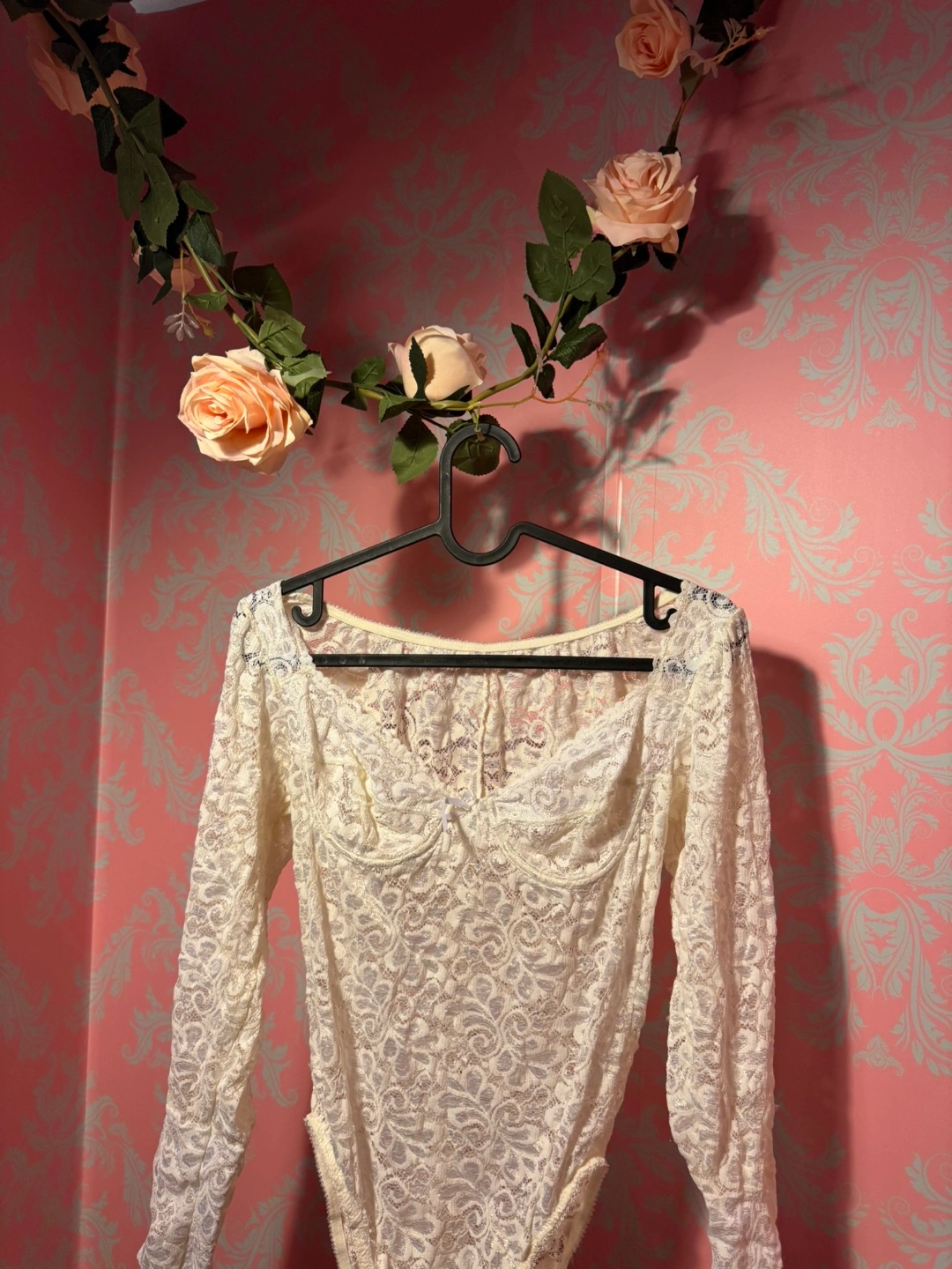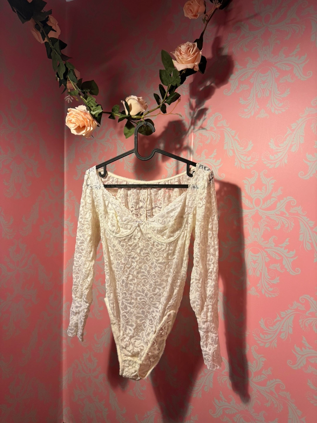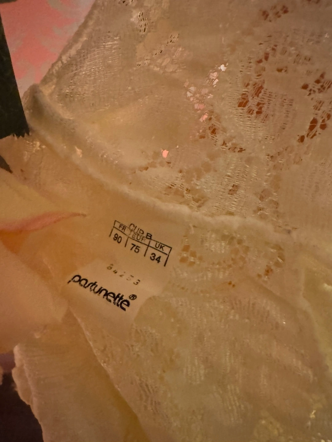Selling a lovely Partunette lace bodysuit. It's a delicate and beautiful piece, perfect for layering or wearing on its own. The size is 34, which corresponds to a FR 90 and EU/UK 75. It's in great condition and ready for a new home!