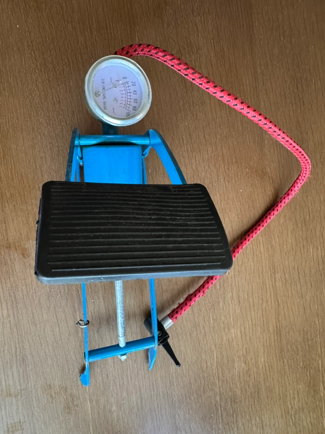 Selling a foot air pump! Great for inflating tires or other inflatables. It's in good working condition and ready to use