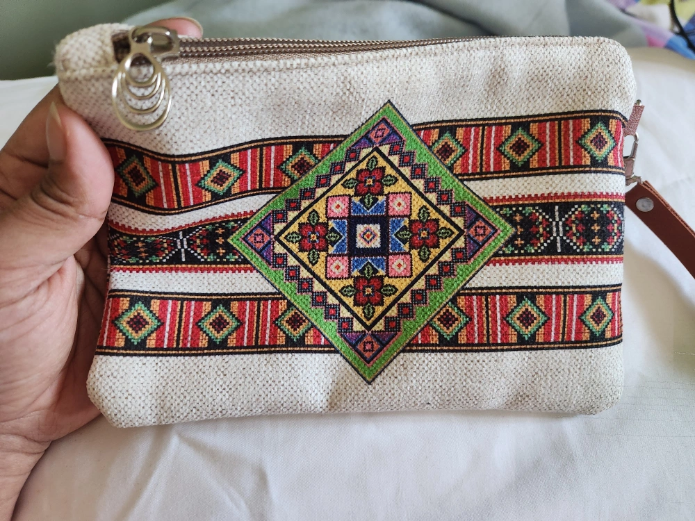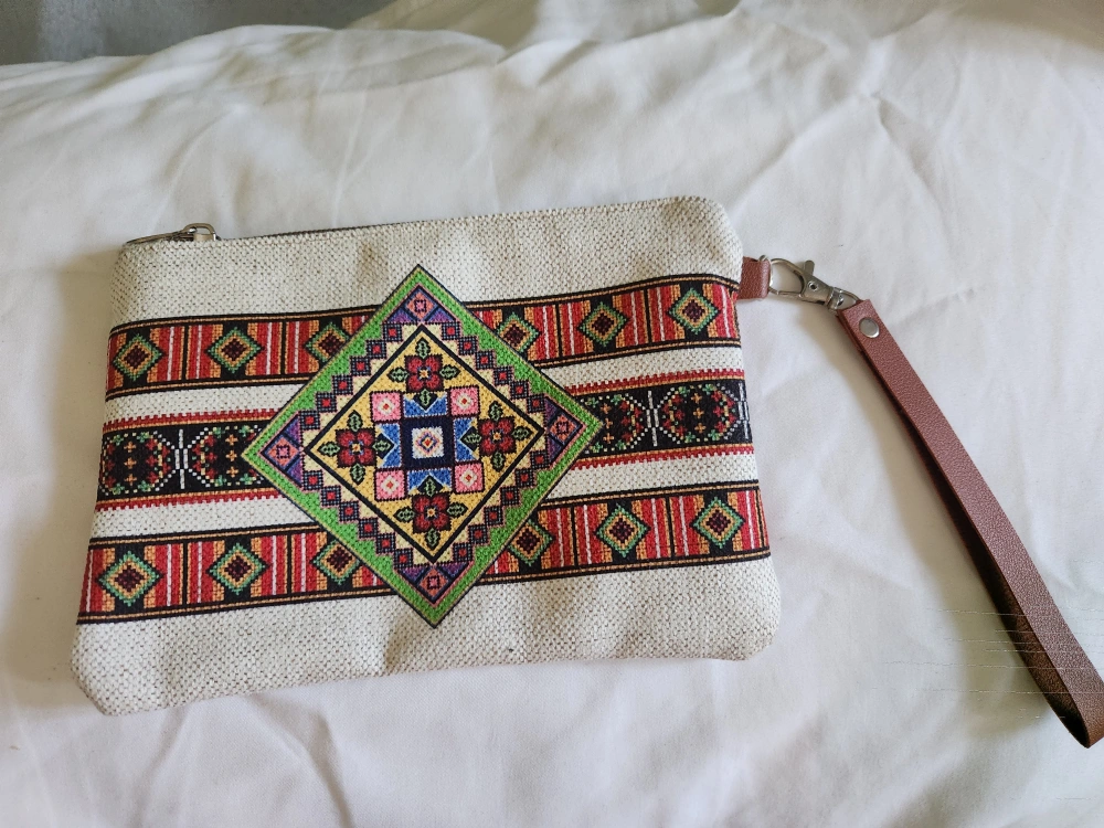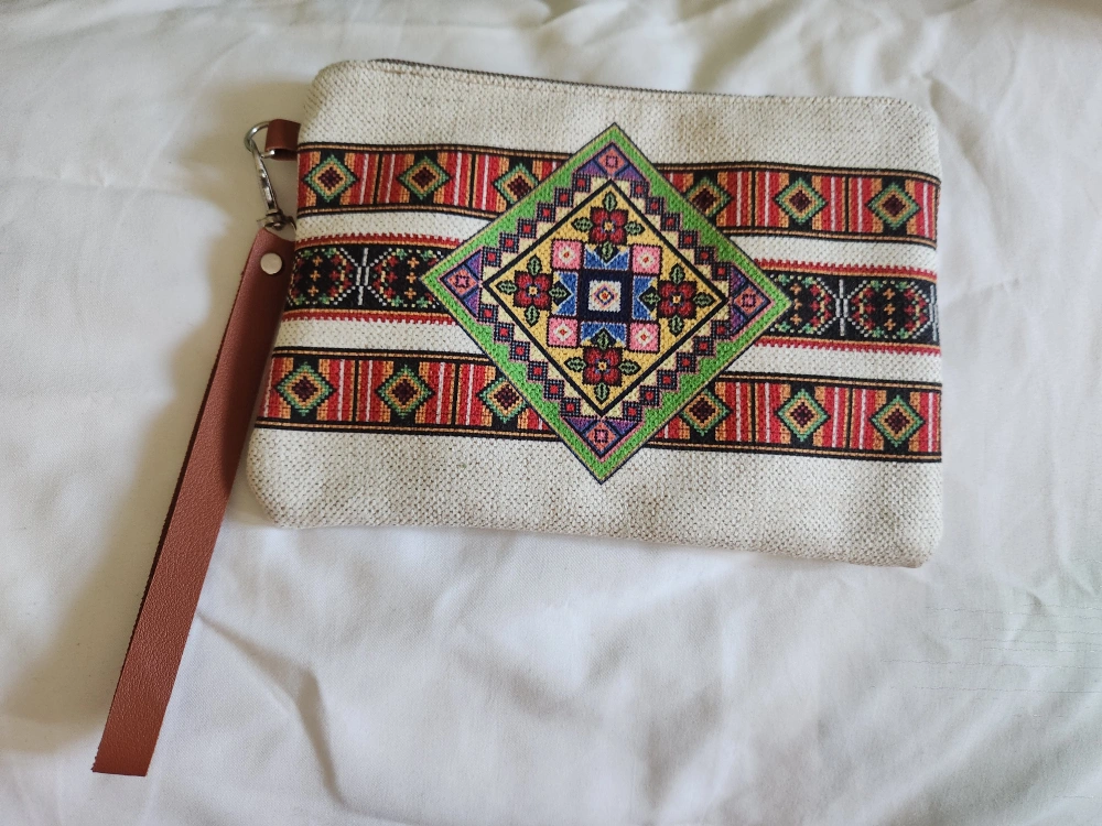 Selling a cute little wristlet pouch! It's got a lovely embroidered design on the front and a convenient wrist strap. Perfect for carrying small essentials like your phone, keys, or some cash. It's in great shape and ready for a new home!