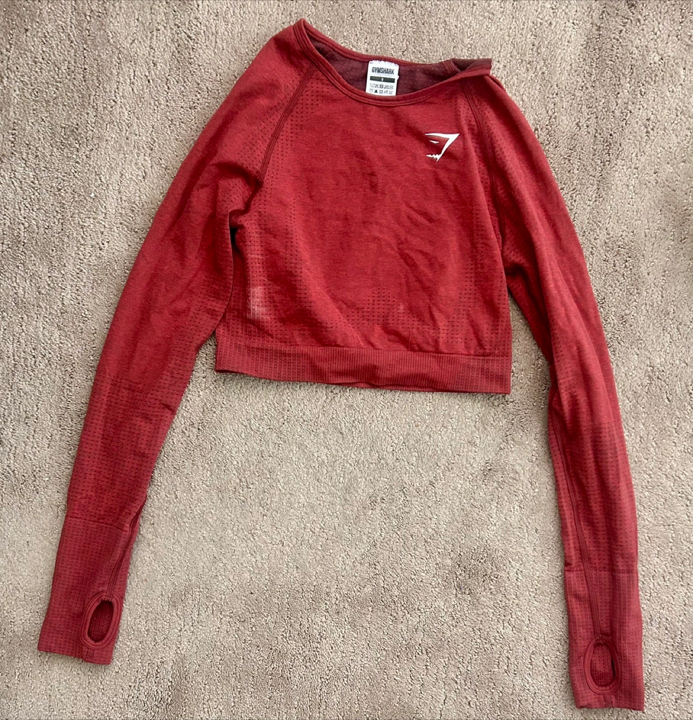 Selling a Gymshark long sleeve top! It's in great condition and perfect for workouts or everyday wear. The material is comfy and breathable, and it has thumb holes for extra coziness! A stylish and functional addition to your activewear collection!!
