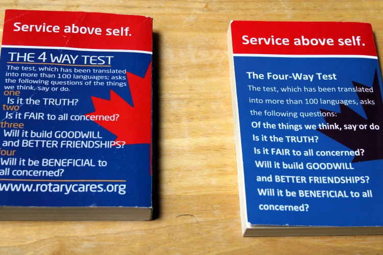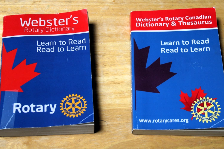 I'm selling two copies of Webster's Rotary Canadian Dictionary & Thesaurus! Both books feature the Four-Way Test on the back. Cash only.