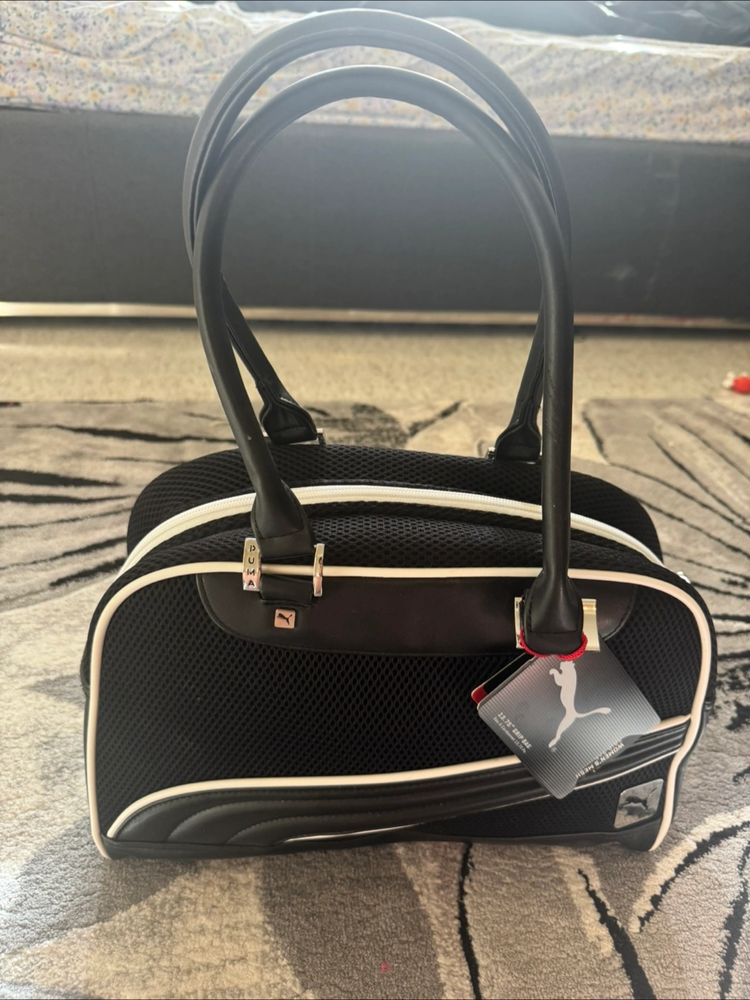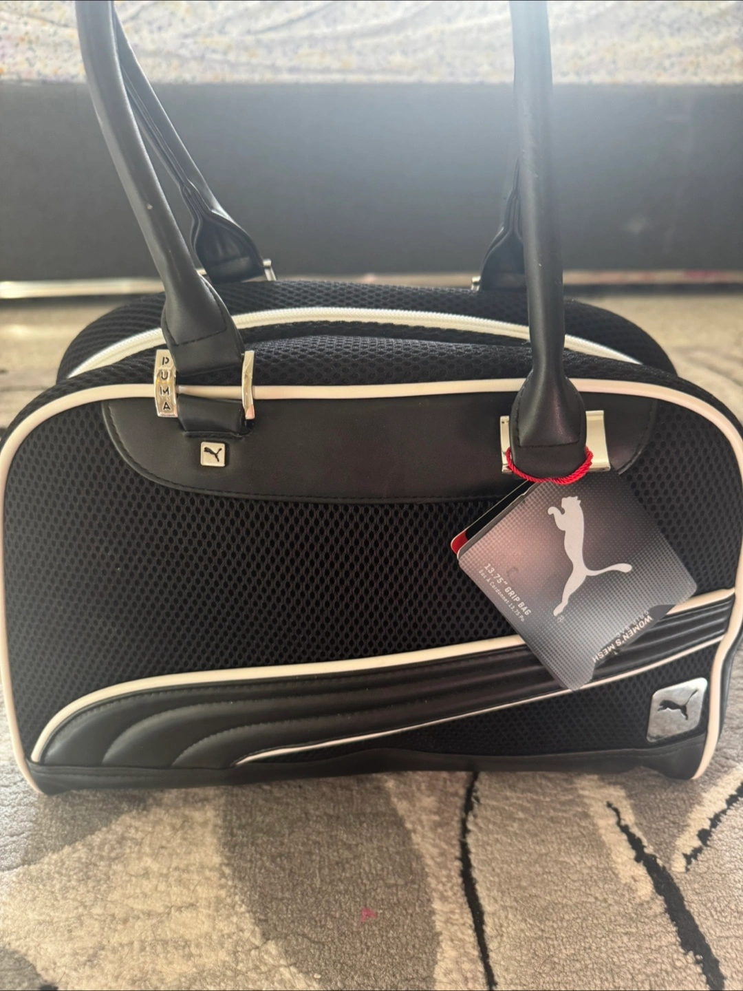 Selling a Puma women's grip bag in black. It's in great condition and ready for a new home! This stylish bag is perfect for carrying your essentials with a touch of sporty flair