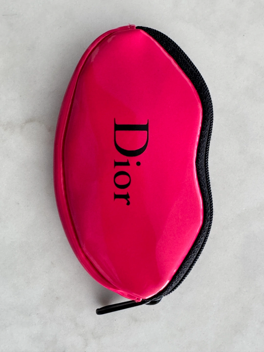 Selling a cute Dior makeup bag shaped like a pair of lips! It's a vibrant pink colour with a black zipper. The material is polyurethane/polyester.