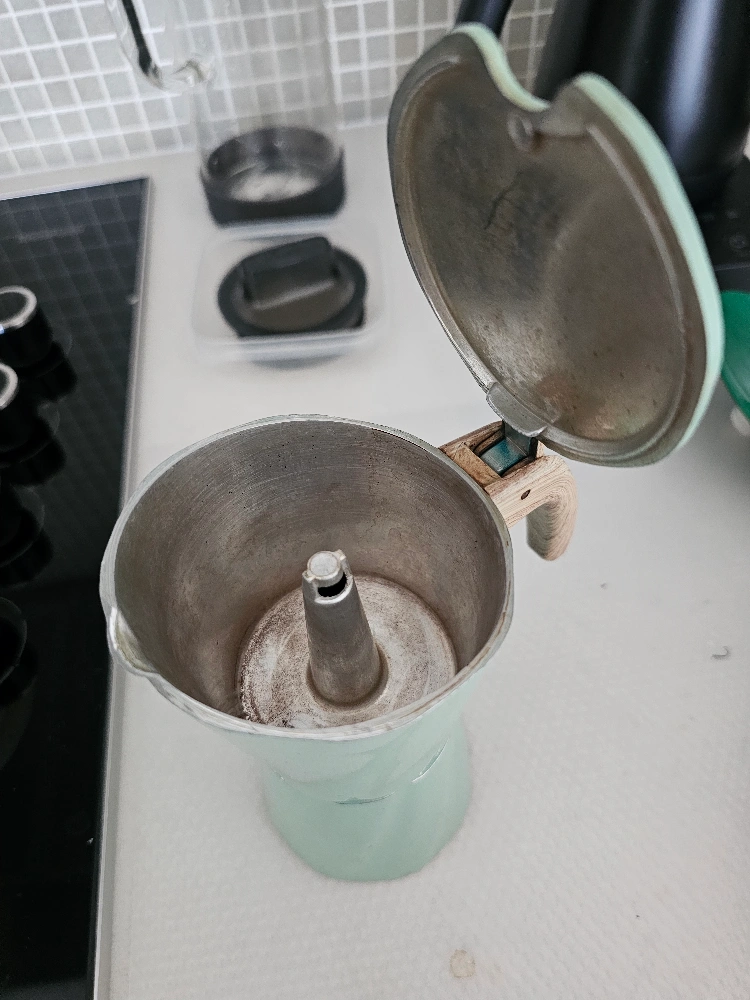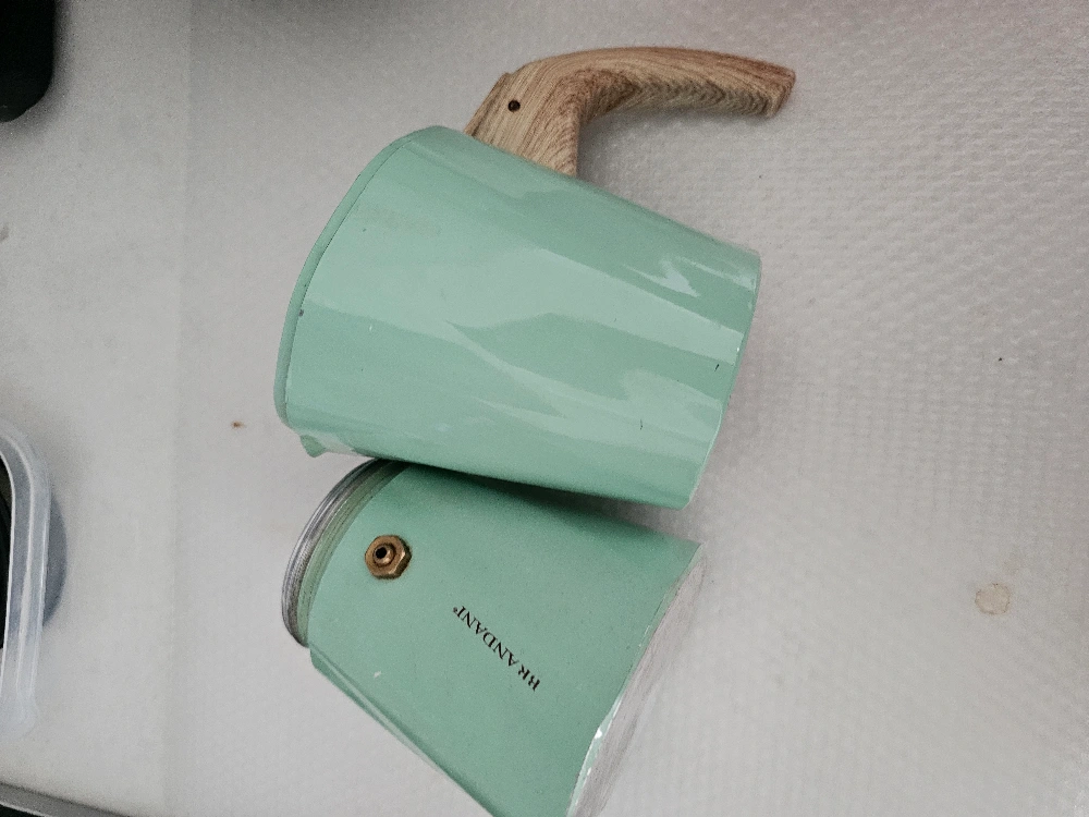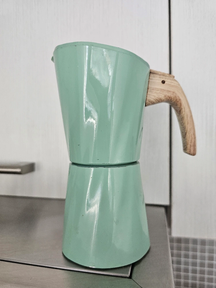 Selling a Brandani Moka pot in a lovely light green colour! It's perfect for making a quick and delicious espresso at home. 4 cup coffee. stovetop maker. Great for coffee lovers!
