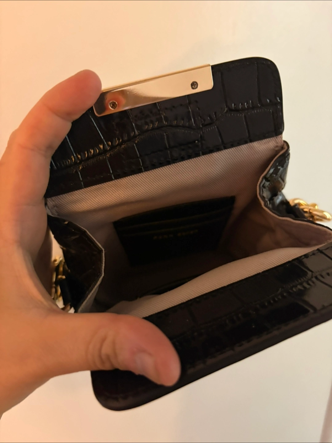 mini bag in black croc print! It's a cute little bag to carry your essentials Brand new Magnetic clousure