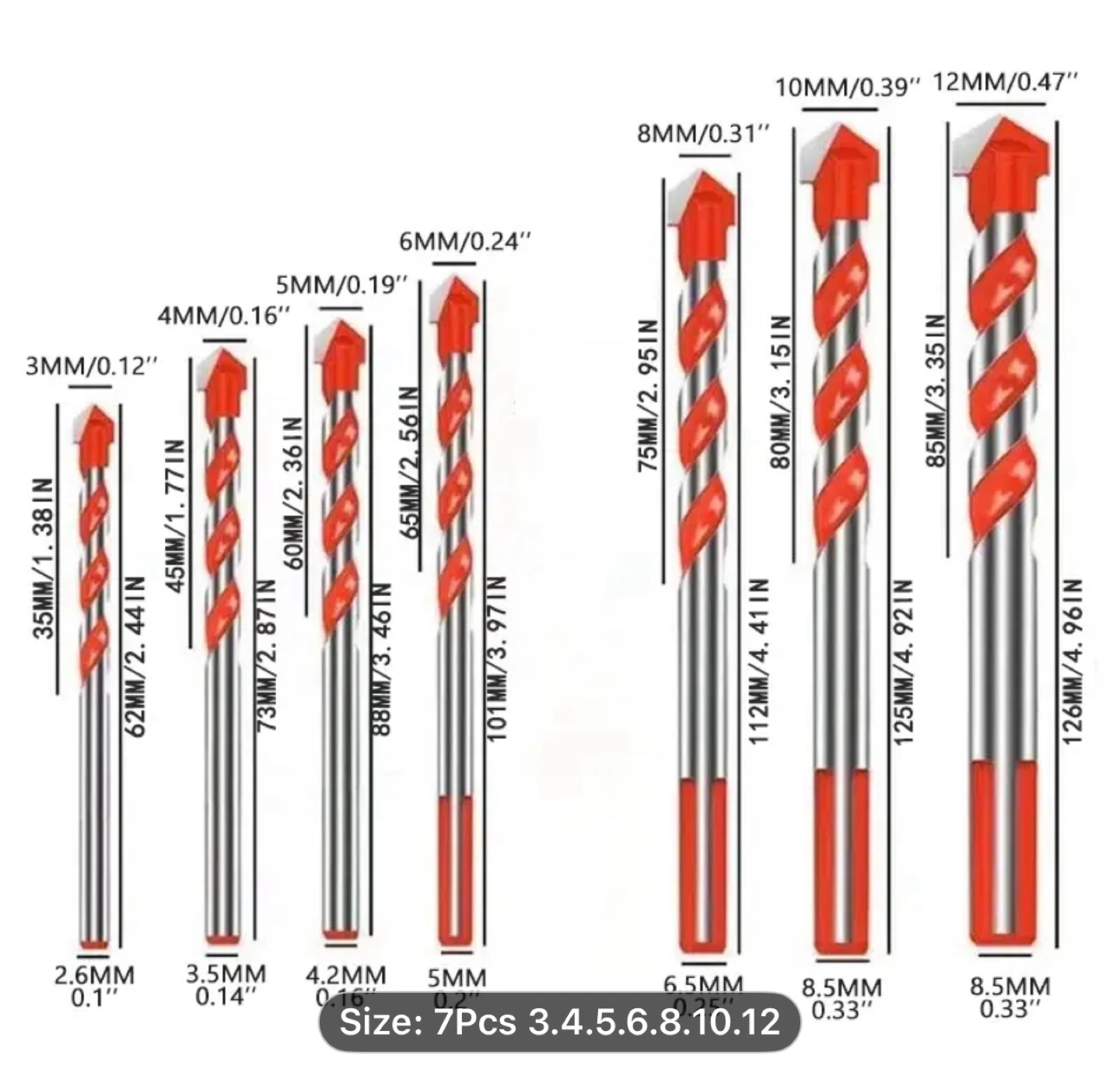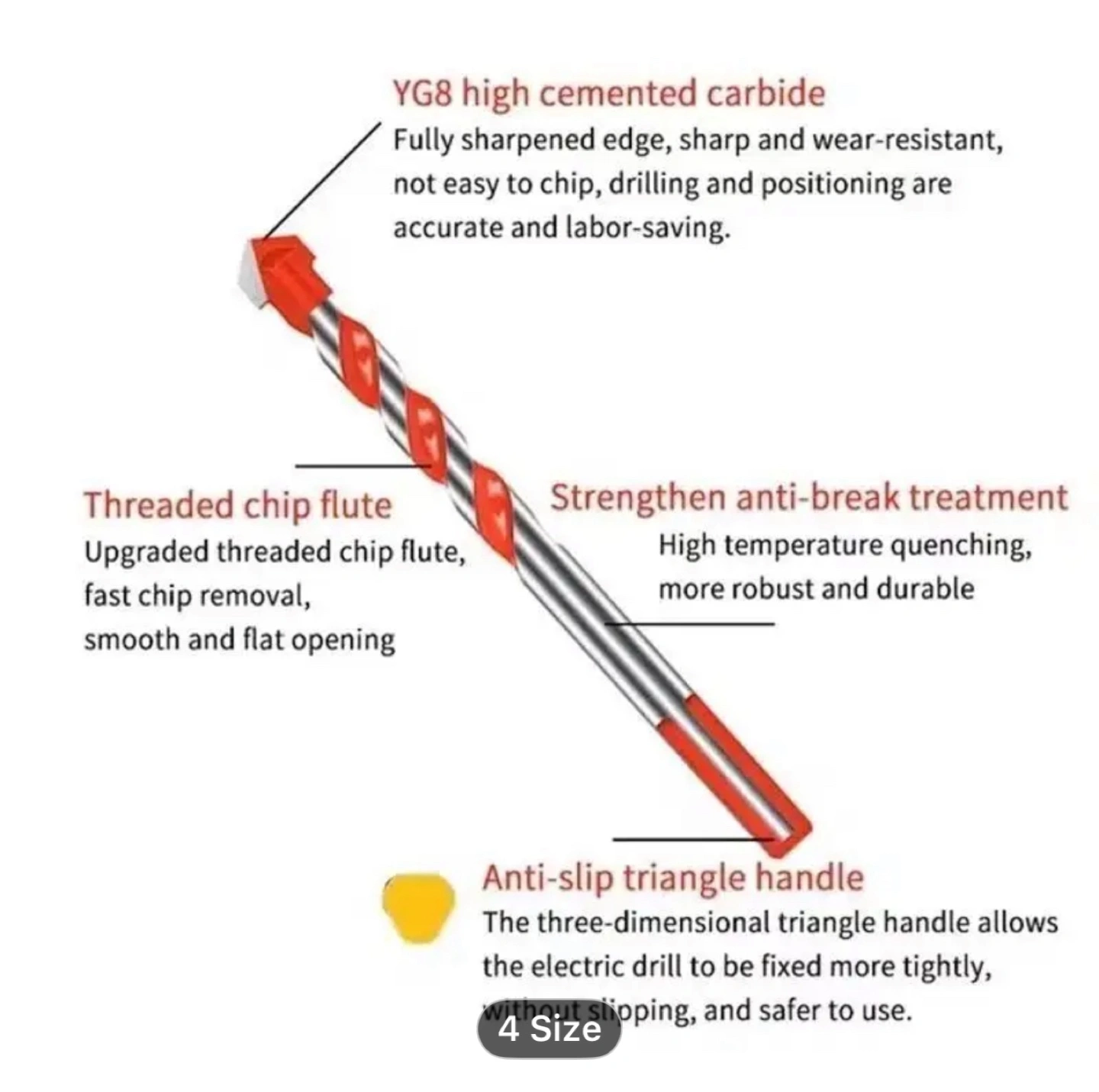 Masonry Drill Bit Set, Multifunctional Overlord Drill Bit Set Carbide Alloy Triangle Tip, Brick Wall Building Multipurpose For Soil Embryo, Concrete, Cement, Foam Wall, Red Brick, Glass, Wood (Orange)