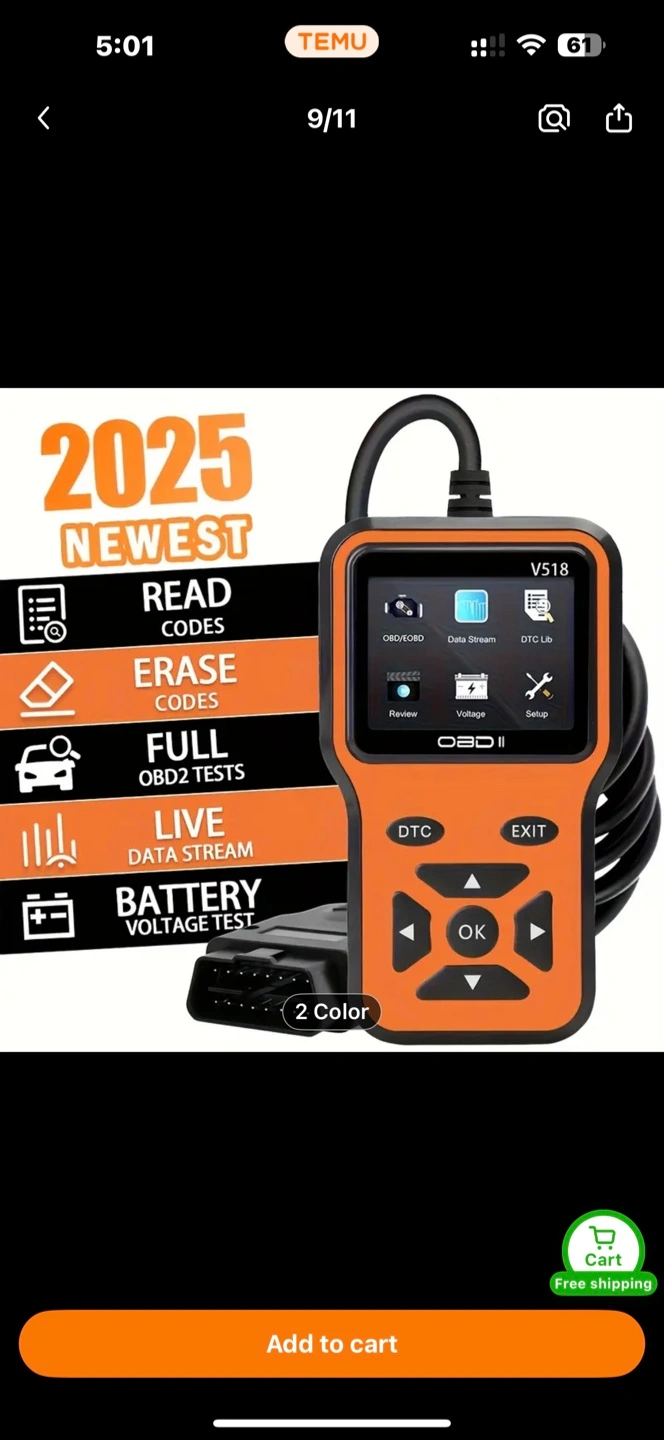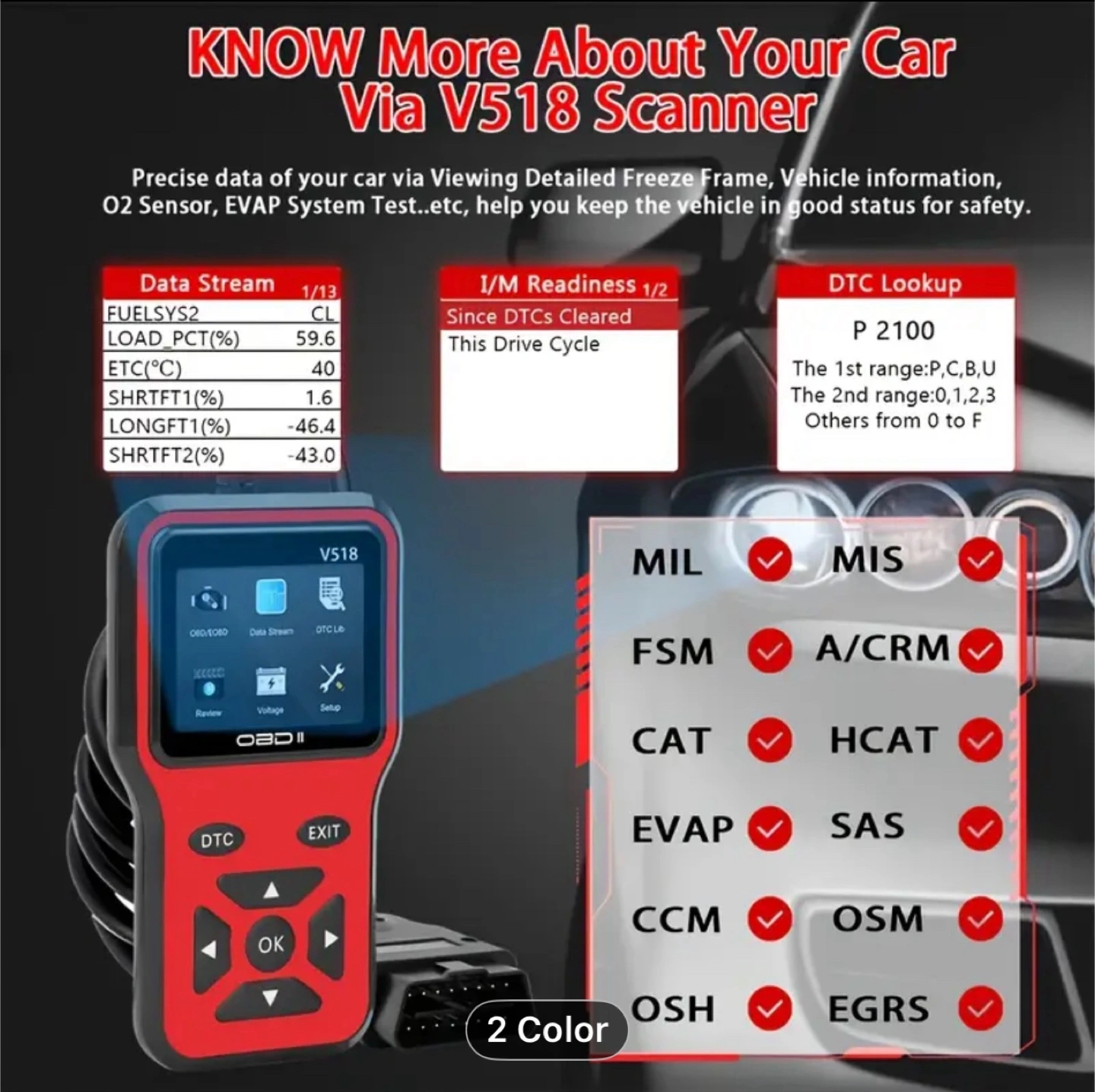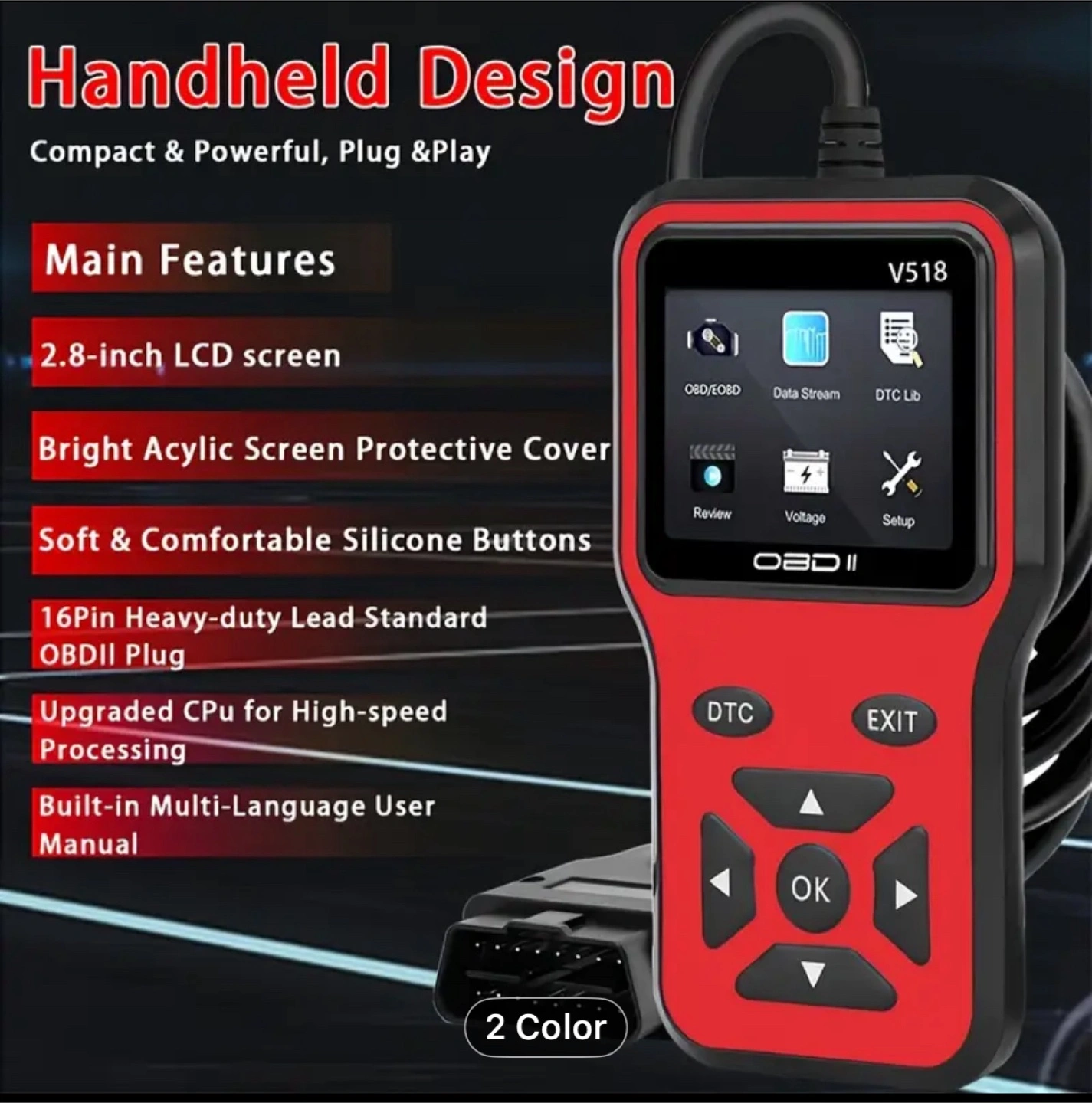OBD2 Scanner - Heavy-Duty OBD II CAN Diagnostic Tool with Read/Erase Codes, Compatible with all cars, Trucks, SUVs (1996 and newer) - No External Battery Needed, Plug-and-Play for Mechanics & DIY, Engine Code Reader, Compact Design, Sturdy Build, Vehicle Diagnostics, Professional Technicians, Car Diagnostics, Handheld Device, Durable Construction, Auto Enthusiasts