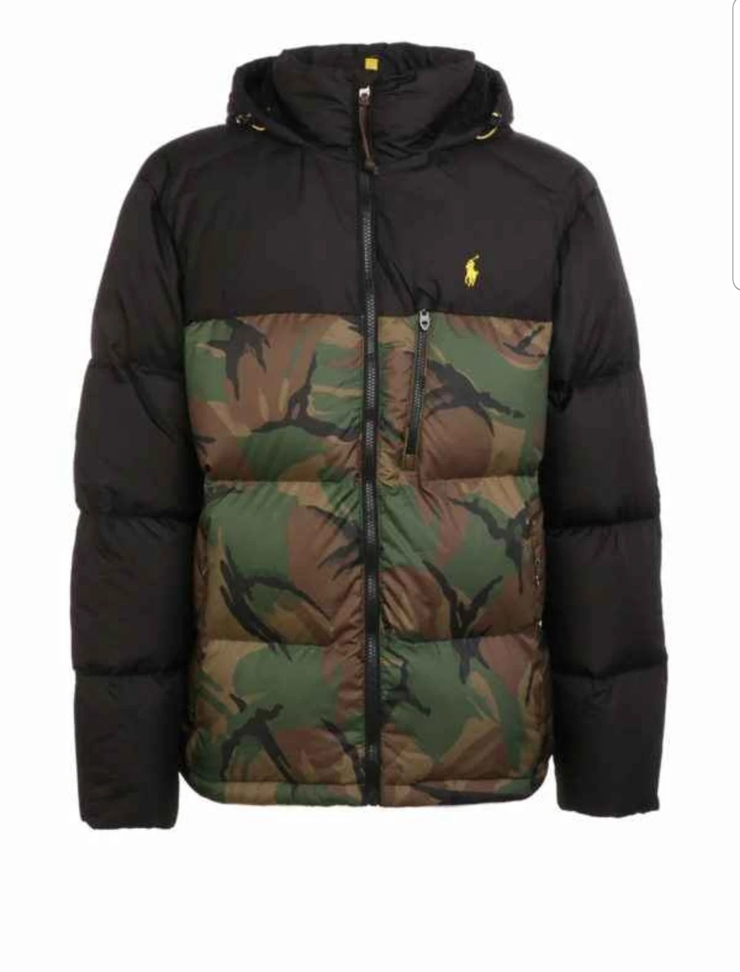 Check out this sz L, stylish Ralph Lauren puffer jacket! -Brand New With Tags (never worn) -It features a cool camo pattern on the body and black arms + upper portion. With a yellow RL Polo Horse logo. It's a size Large and looks great -Original retail price as depicted on the tag is: $448.00 which = $510.00 CAD after taxes. -my asking price $350.00 obo Pick up in the pharmacy and Danforth area.