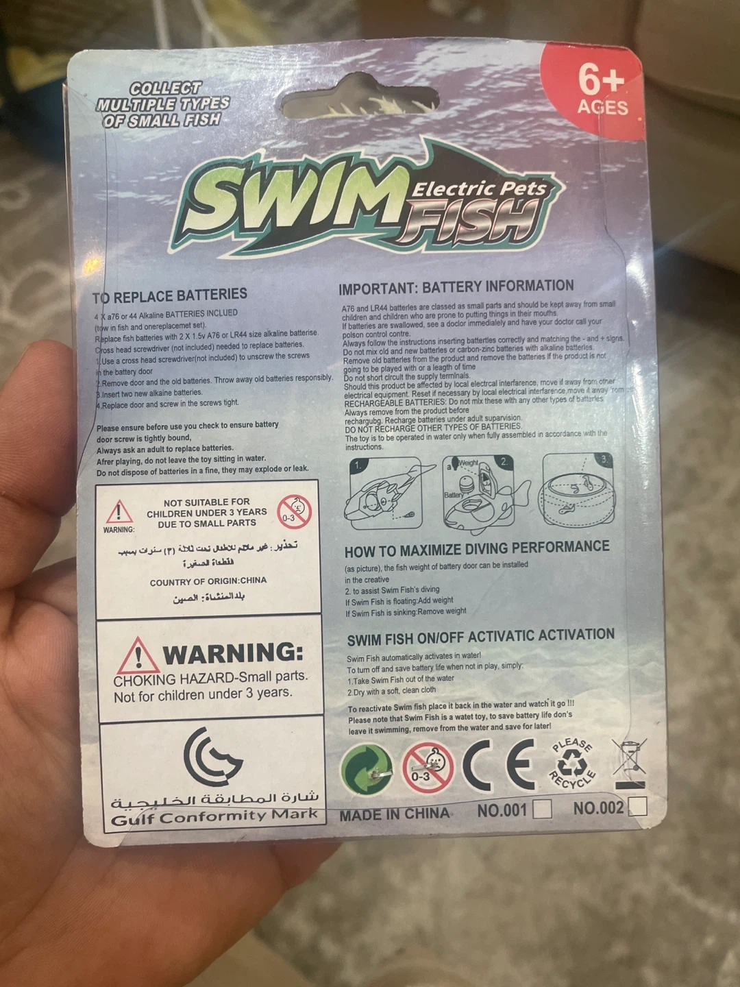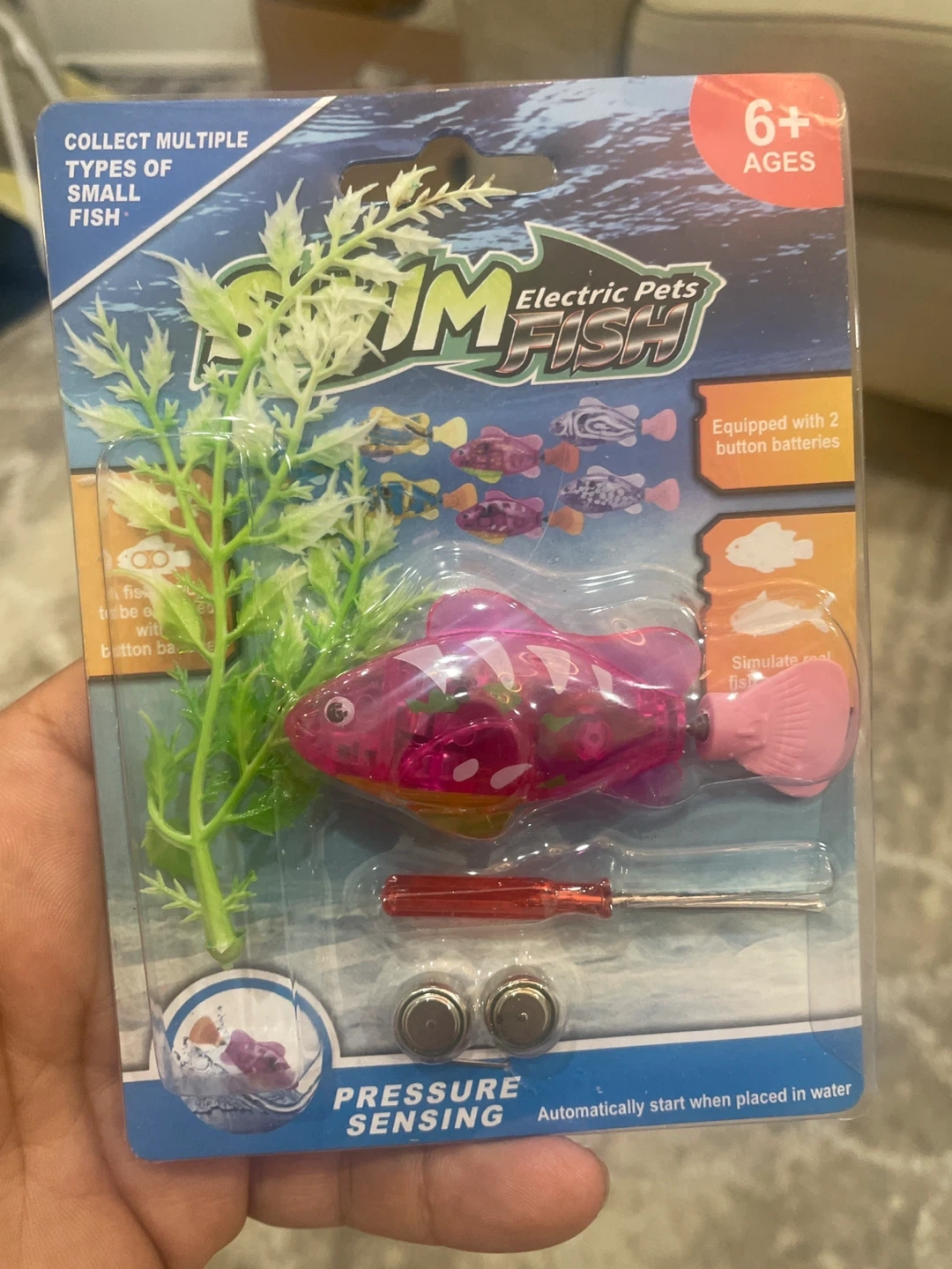 Brand new Swim Electric Pets Fish, still in its original packaging! It's a fun toy for kids aged 6 and up. The fish comes equipped with 2 button batteries and a small screwdriver to replace the batteries. Just place it in water and watch it go!