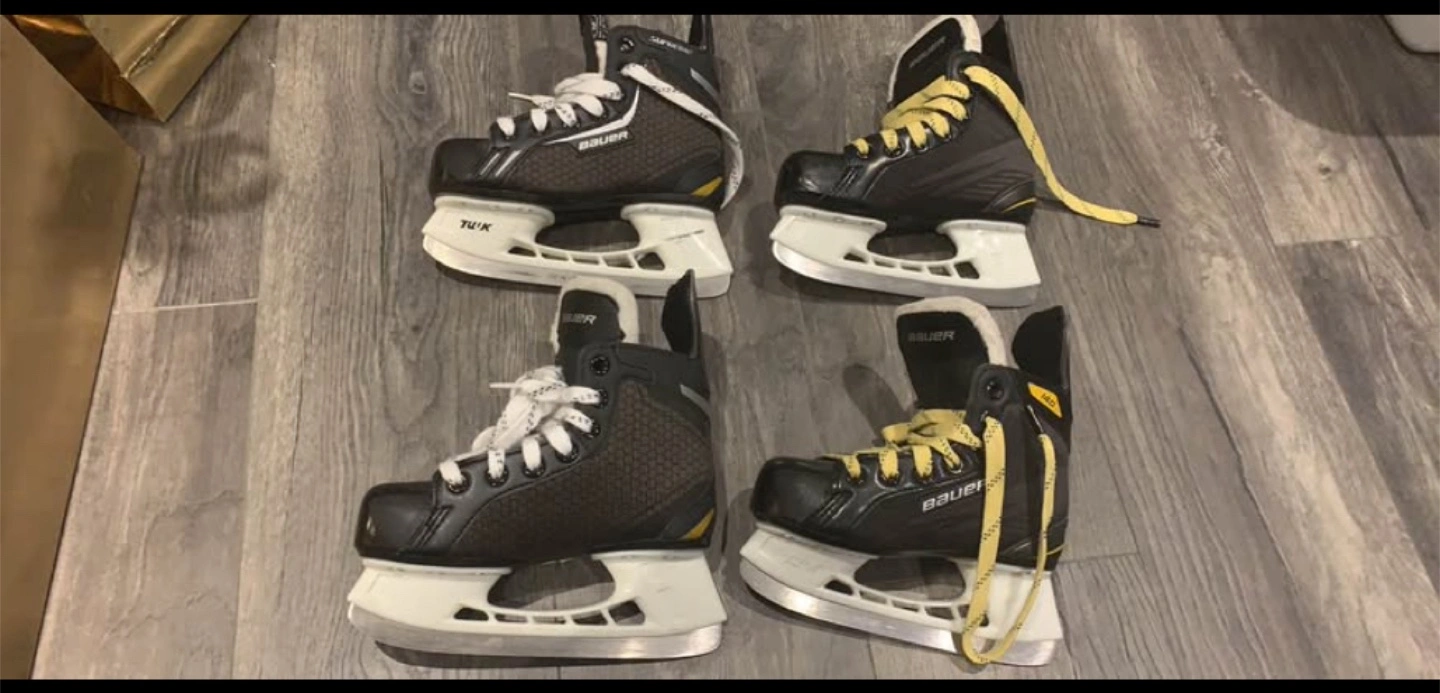 Selling Bauer ice skates. One pair is size US 1 Youth, and the other is size US Y12. Great for kids learning to skate or playing hockey!