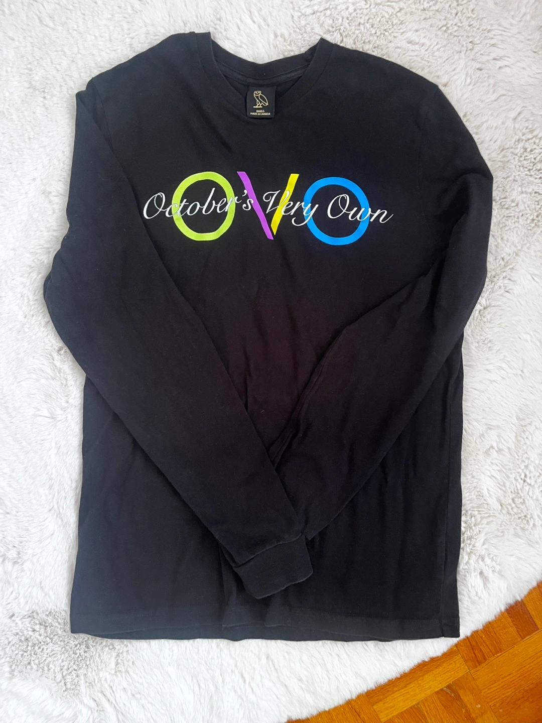 I'm selling a black long-sleeve graphic t-shirt from October's Very Own (OVO). It's a size small and authentically made in Canada!