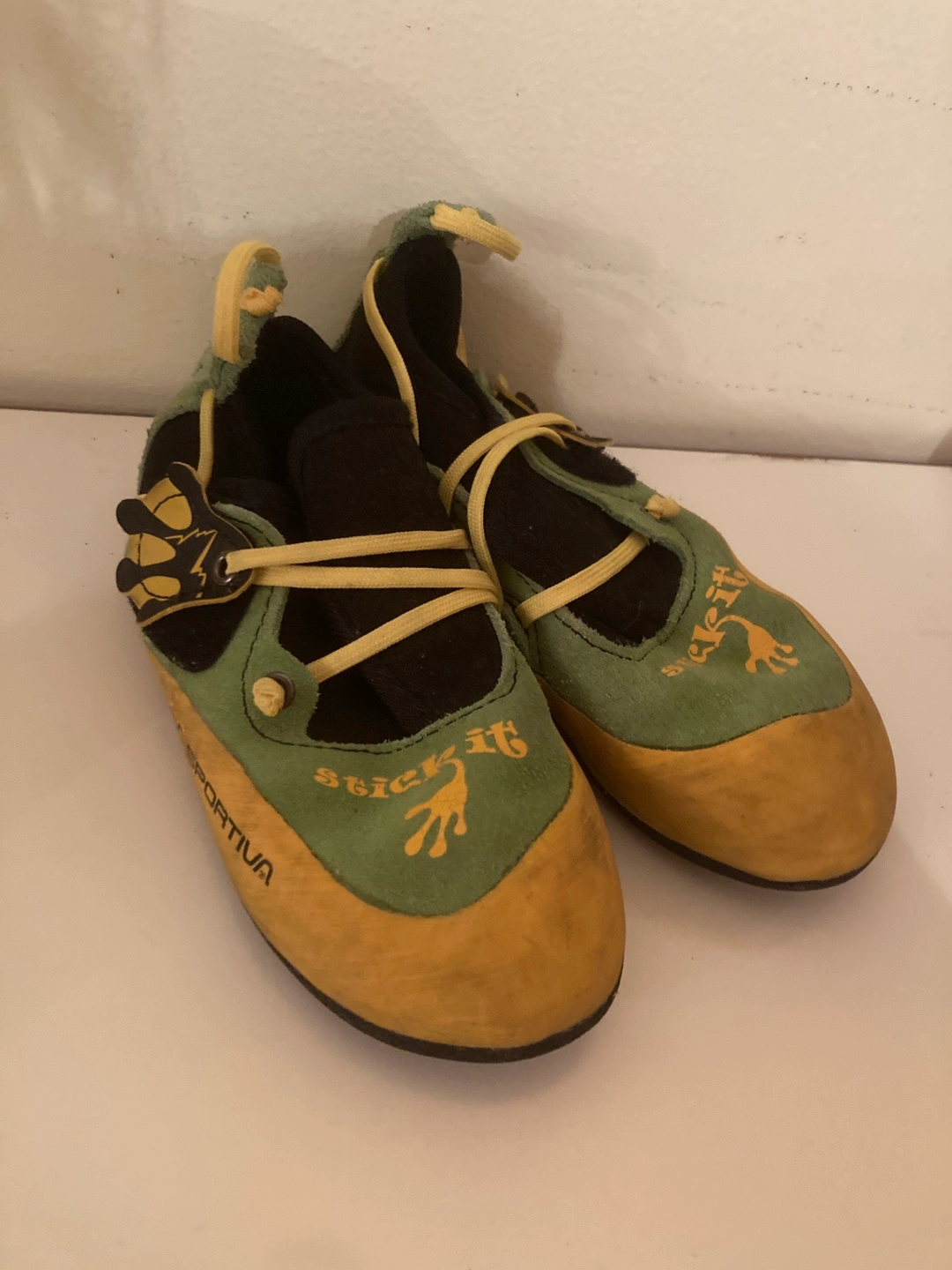 Selling a pair of La Sportiva Stickit kids / toddler climbing shoes. They are a size 12-13 (USA). The upper is leather and the lining is made. Pick up from Regent park - Corktown Area. Can be Scarborough (Weekend) or Dufferin Grove Park (Thu), can be nightingale. :)