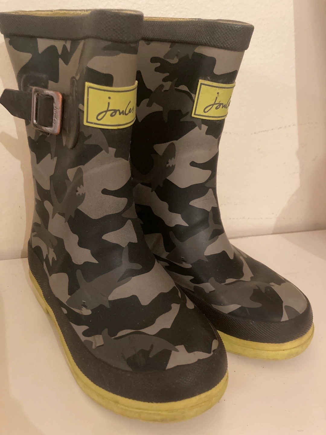 Are you looking a real rubber rain boots? These Joules kids rain boots are perfect for puddle jumping! They feature a cool camouflage pattern and are in great condition. The size is toddler US 11 / EU 28. Pick up from Regent park - Corktown Area. Can be Scarborough (Weekend) or Dufferin Grove Park (Thu), can be nightingale. :)