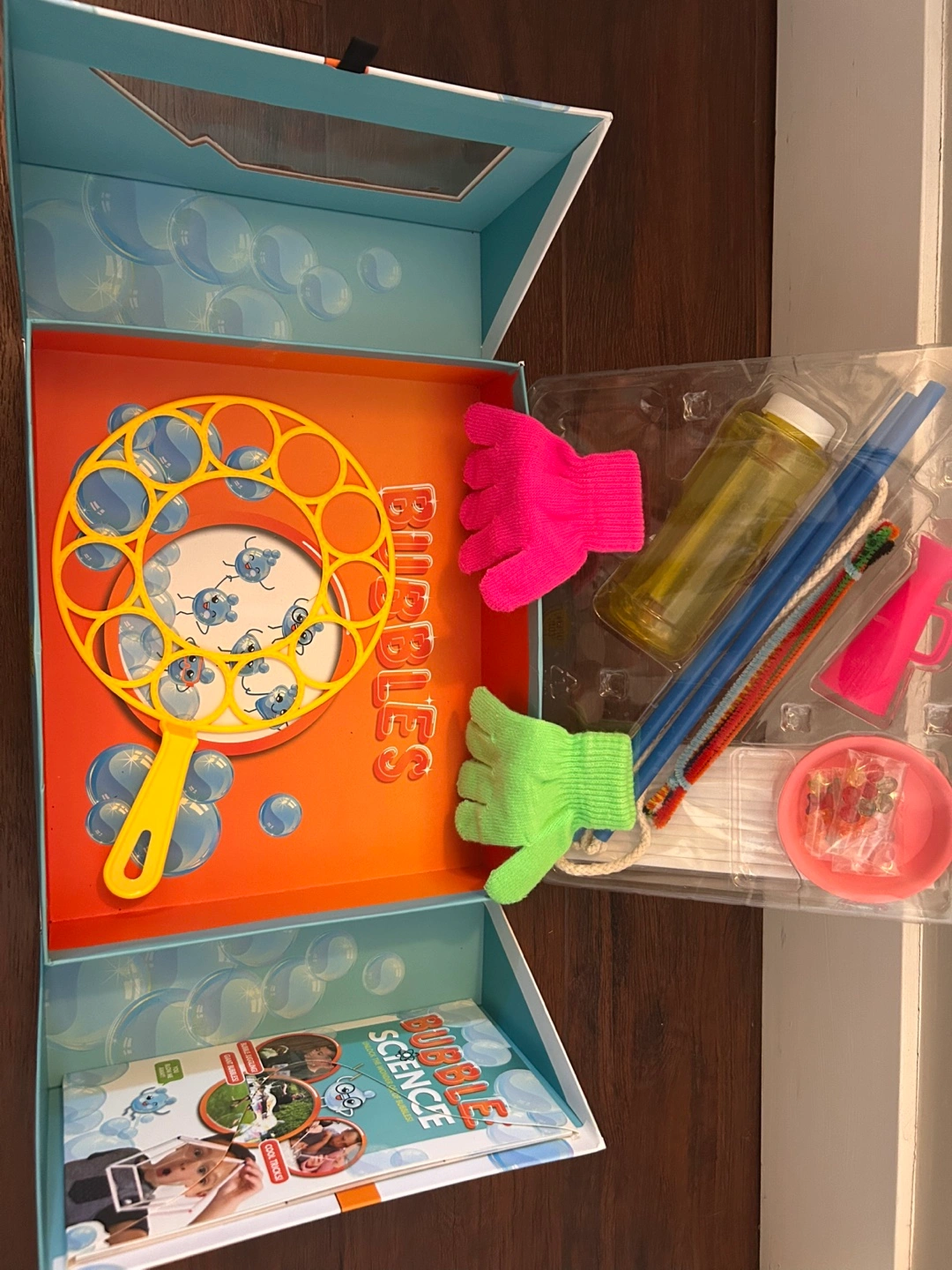 Materials for bubble experiments (solution not included) Step-by-step instructions Safe and educational science activities • Encourages curiosity and STEM learning • Hands-on fun and screen-free activity 📦 Condition: Used (❗️bubble solution already used, not included❗️)