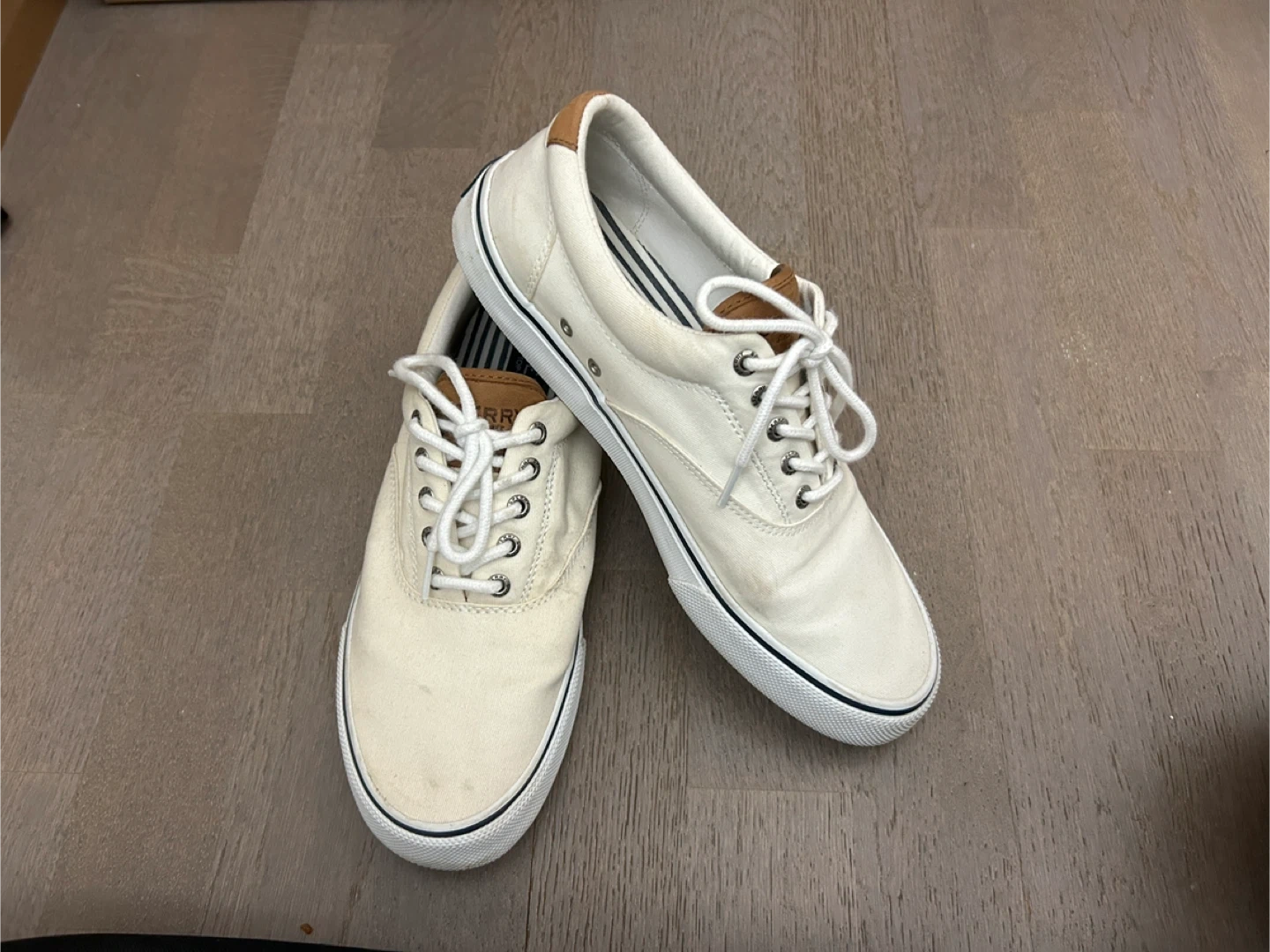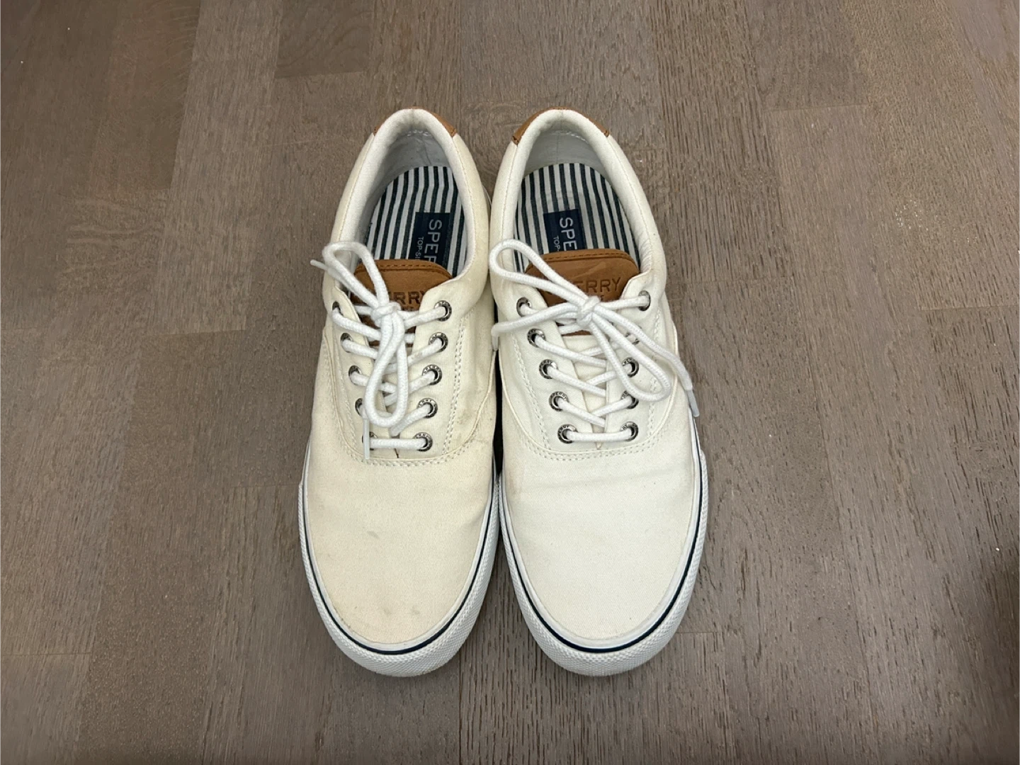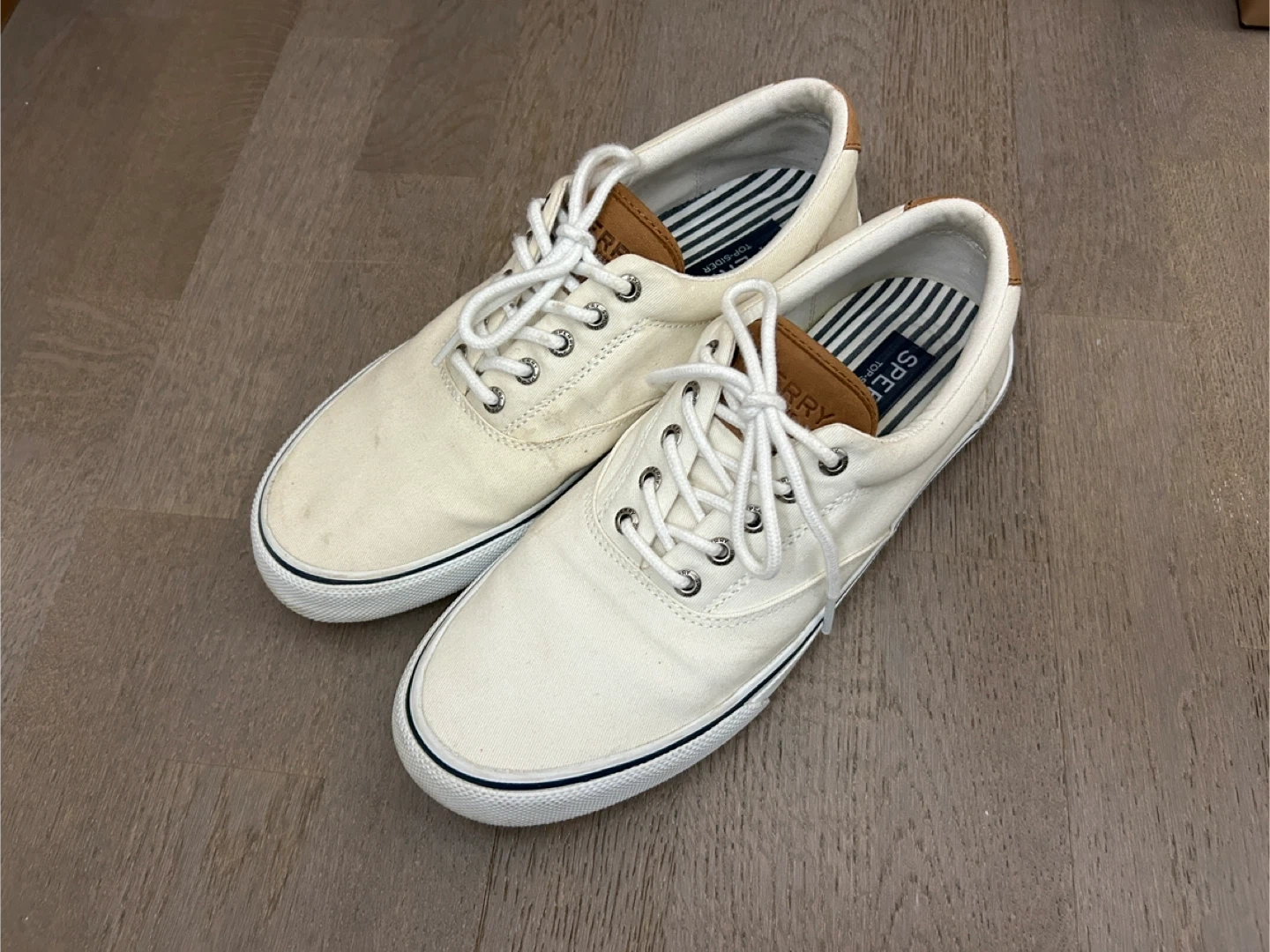 Selling a pair of Sperry Top-Sider canvas sneakers. They're in good condition with some mild signs of wear, as you can see in the photos. Great for casual wear!