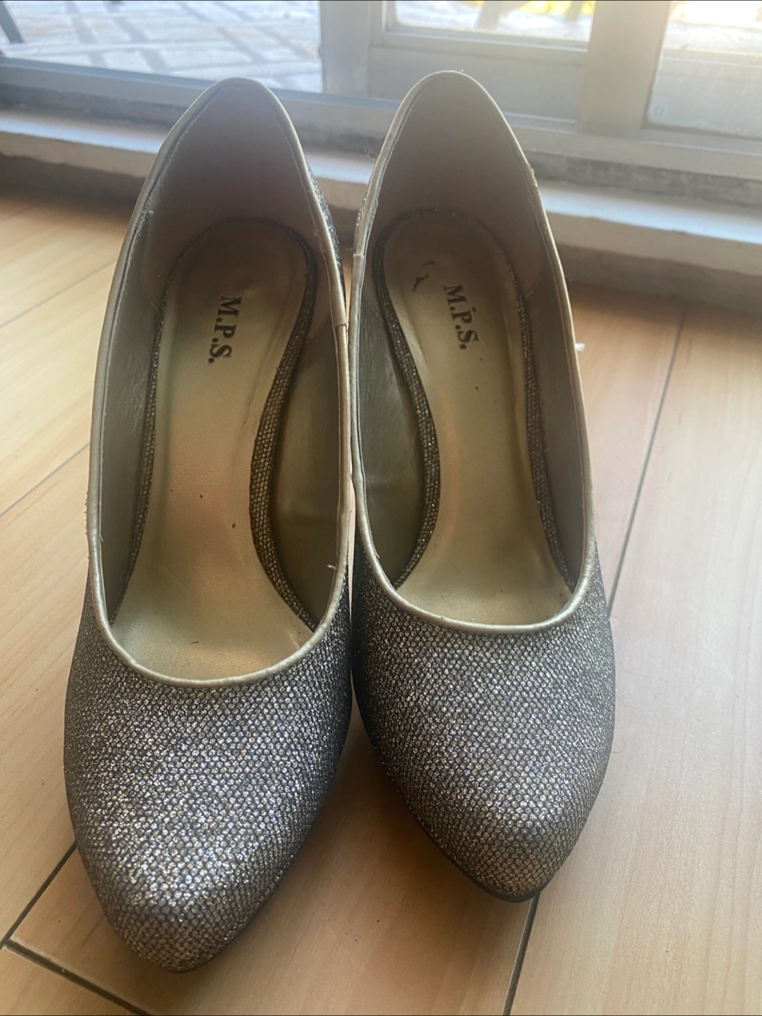 Selling a pair of M.P.S. heels in a glittery gold colour. They're a size 8.5 and would be perfect for a night out or special occasion!